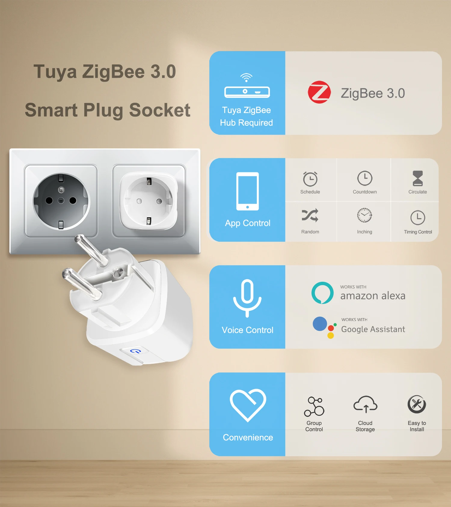 Tuya ZigBee 3.0 Smart Power Plug 16A Wireless App Voice Remote Control Socket Energy Monitor Outlet Works with Alexa Google Home
