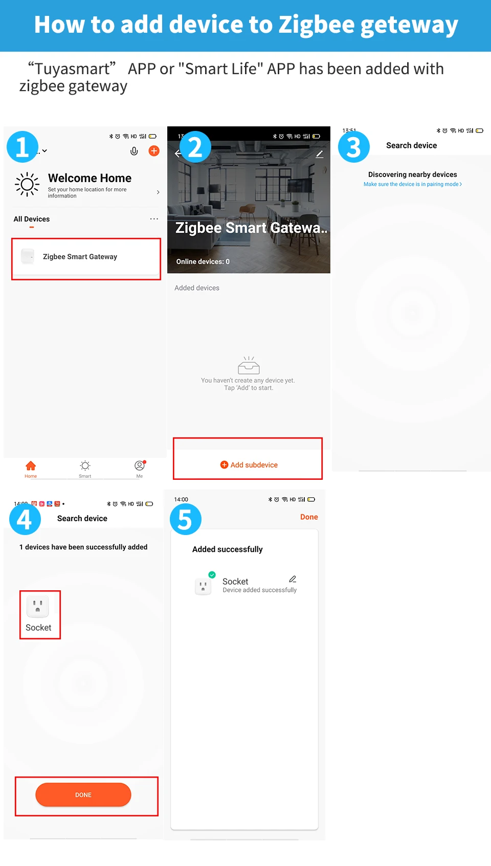 “Tuyasmart”APP or “Smart Life” APP has been added with zigbee gateway.