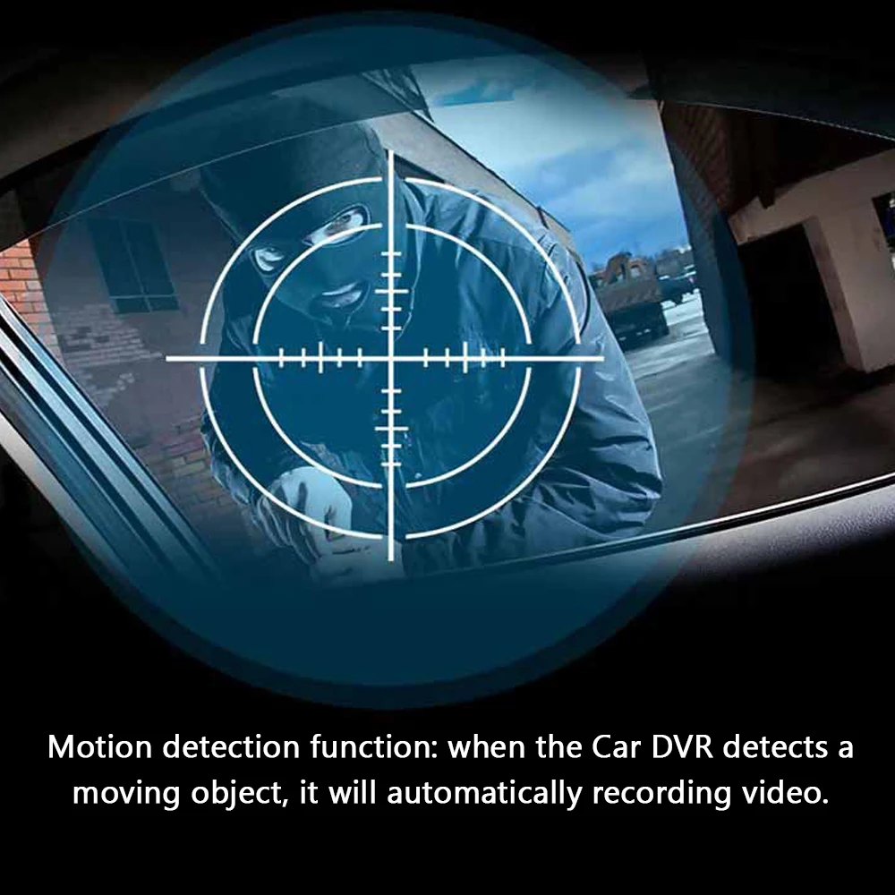 Motion detection function: when the Car DVR detects a moving object, it will automatically recording video. When there is no moving object, it won’t recording and it will detect the moving object again.