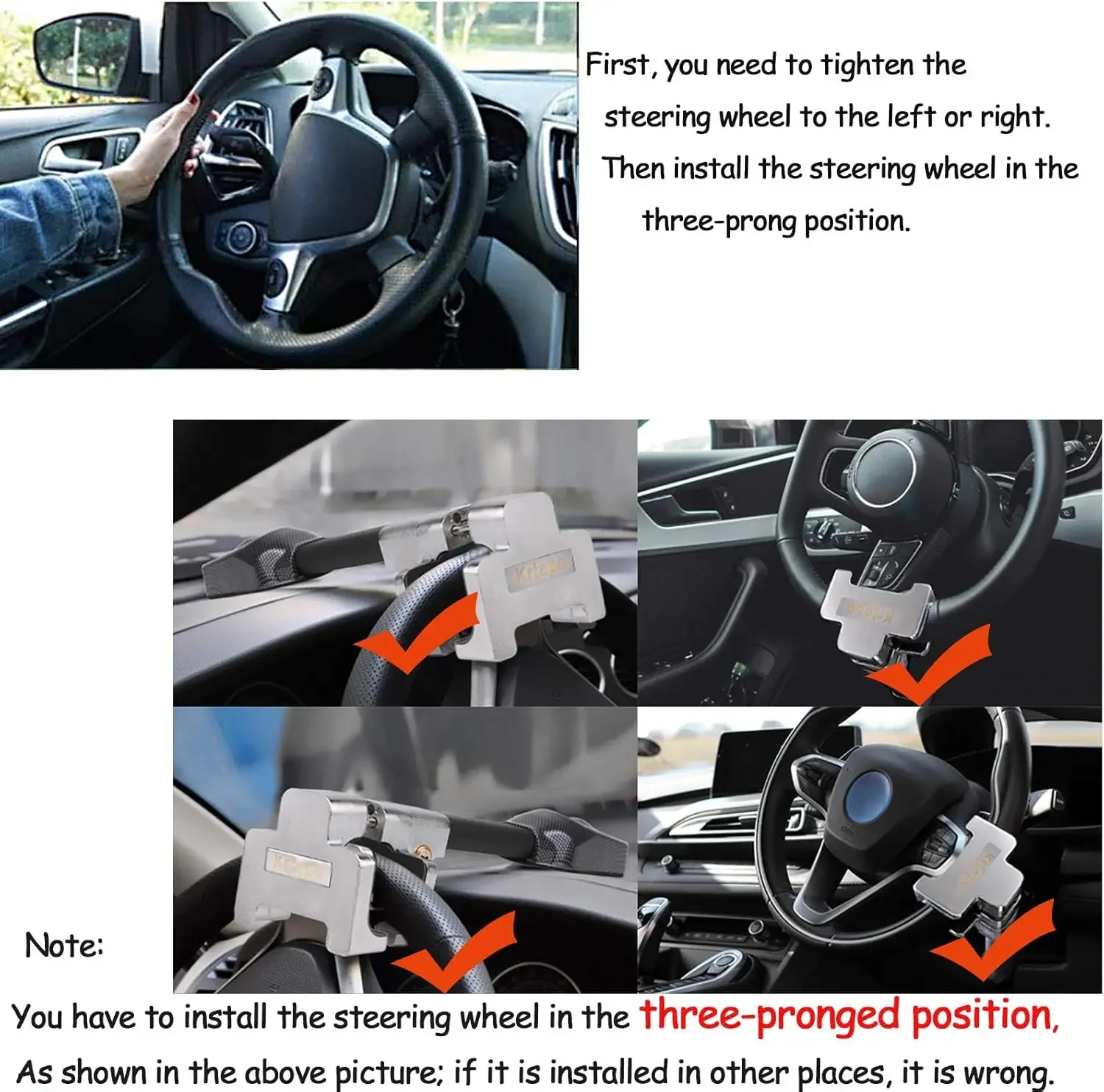 HEAVY-DUTY CONSTRUCTION: Made from heat-treated steel, this anti-theft steering wheel lock is incredibly sturdy; its unique three-lock design requires simultaneous sawing, making it difficult for thieves to remove