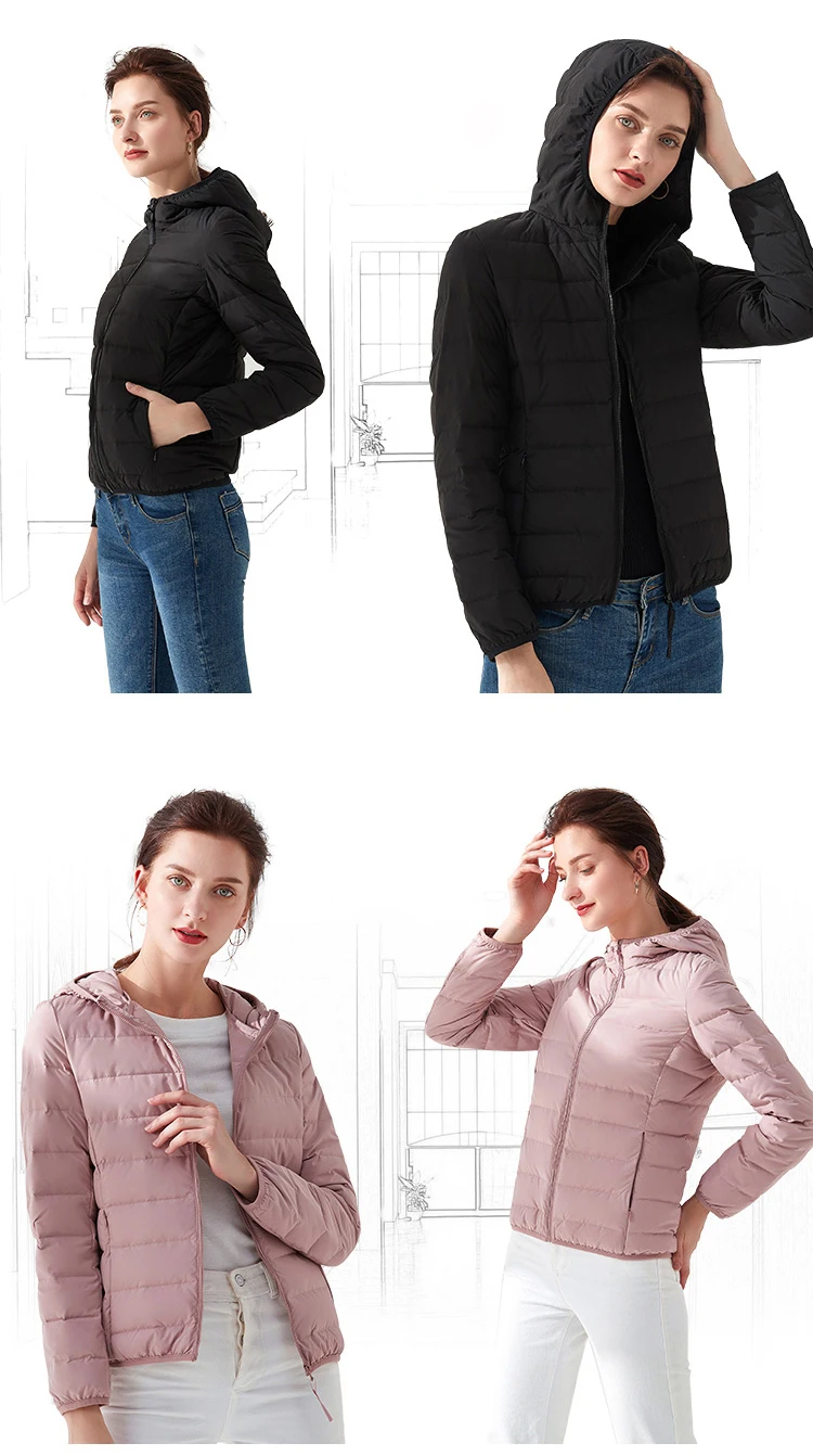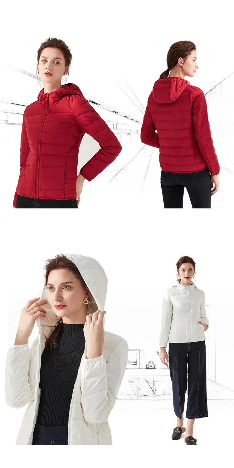 Ultra Light Down Jacket Winter Women Waterproof Jackets Warm Coat Hooded Parka Female Solid Portable Seamless Matte Outwear
