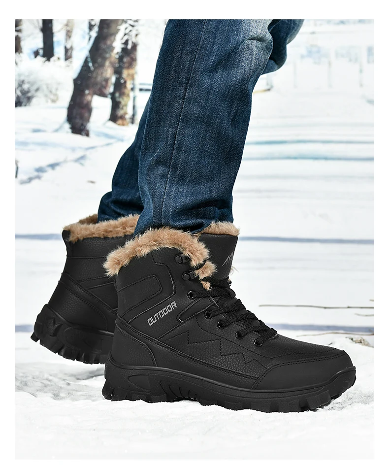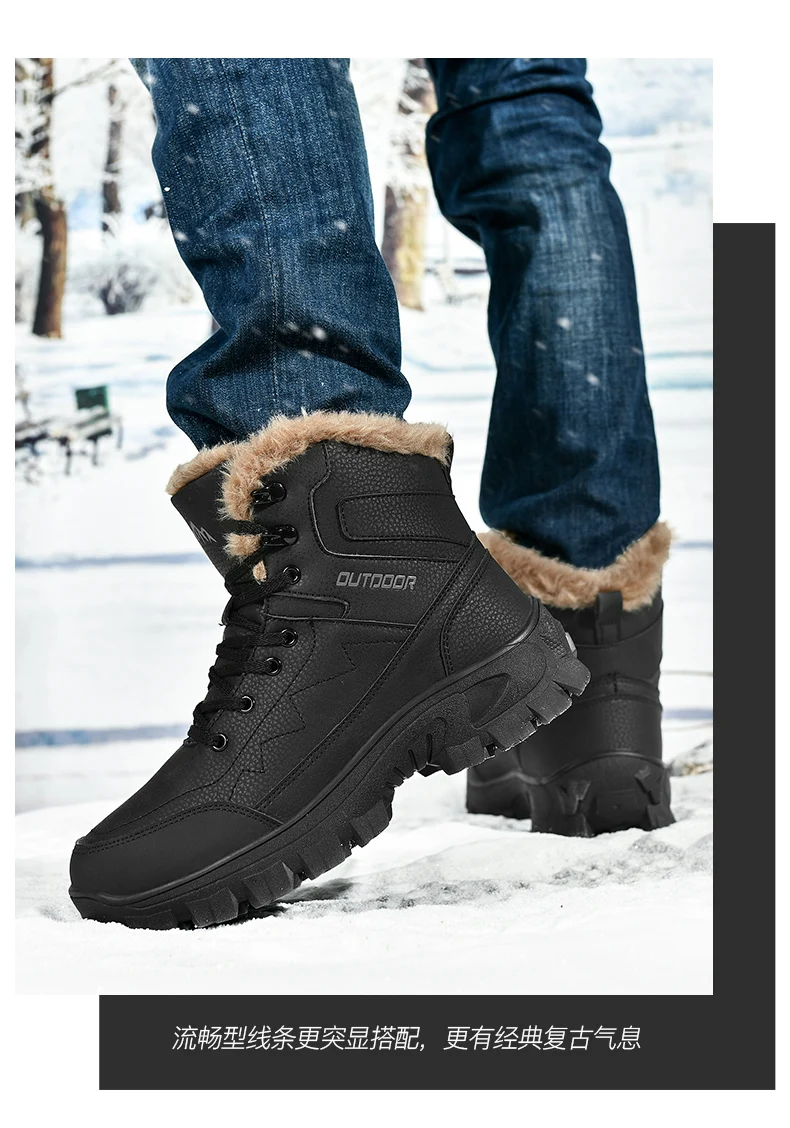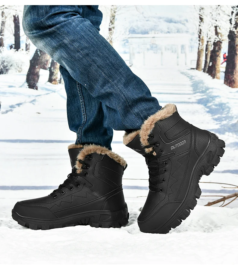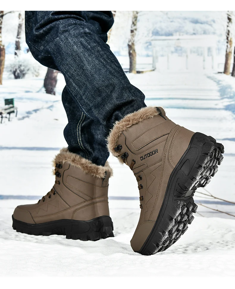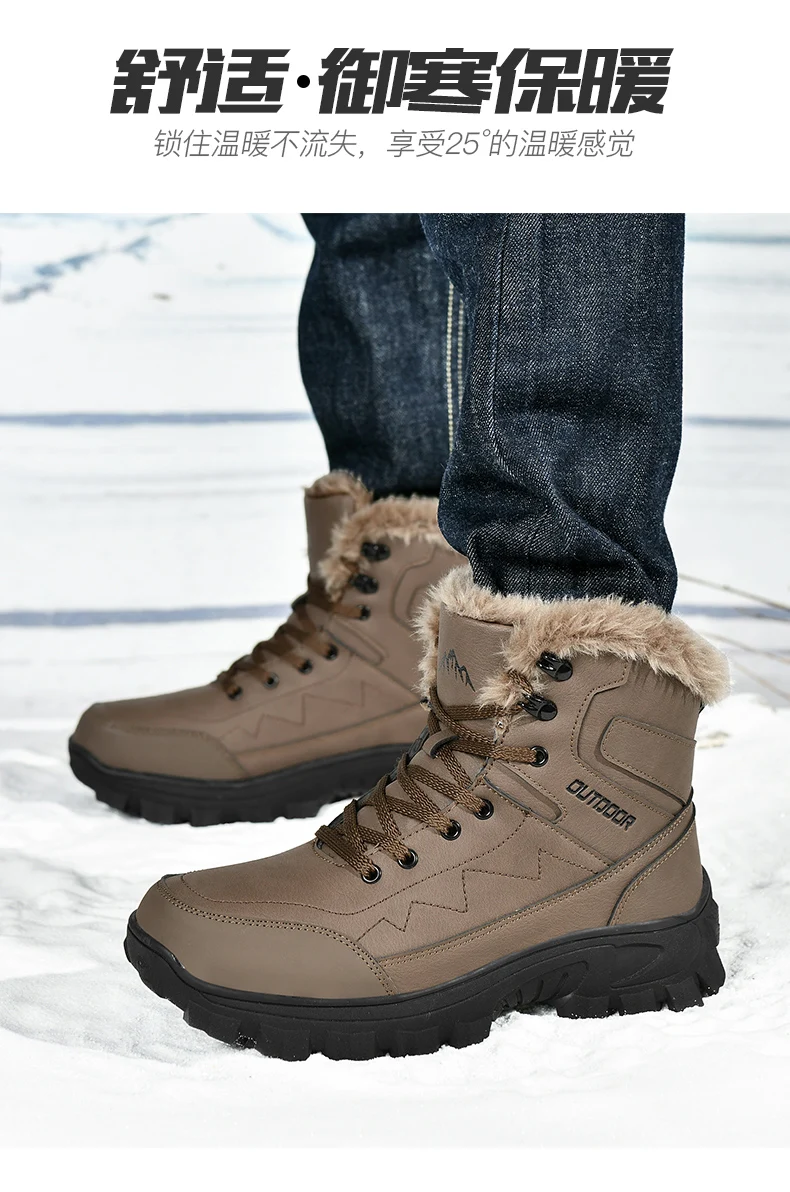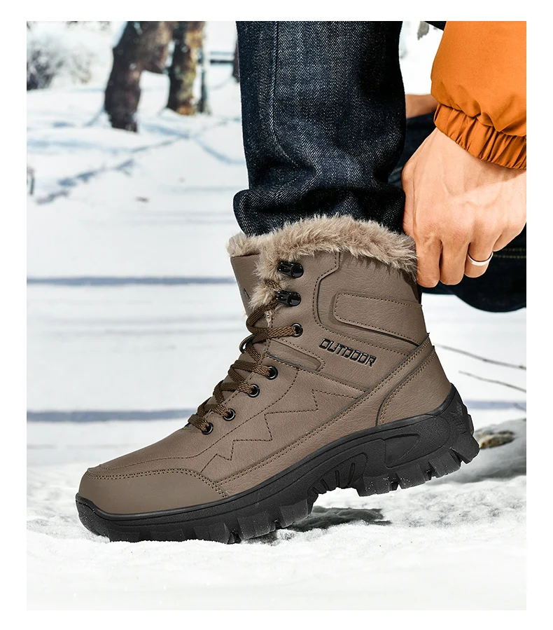 Ultra Warm Men’s Winter Snow Boots Hiking Boots High Quality Waterproof Outdoor Leather Sneakers for Men Big Size Cotton Shoes