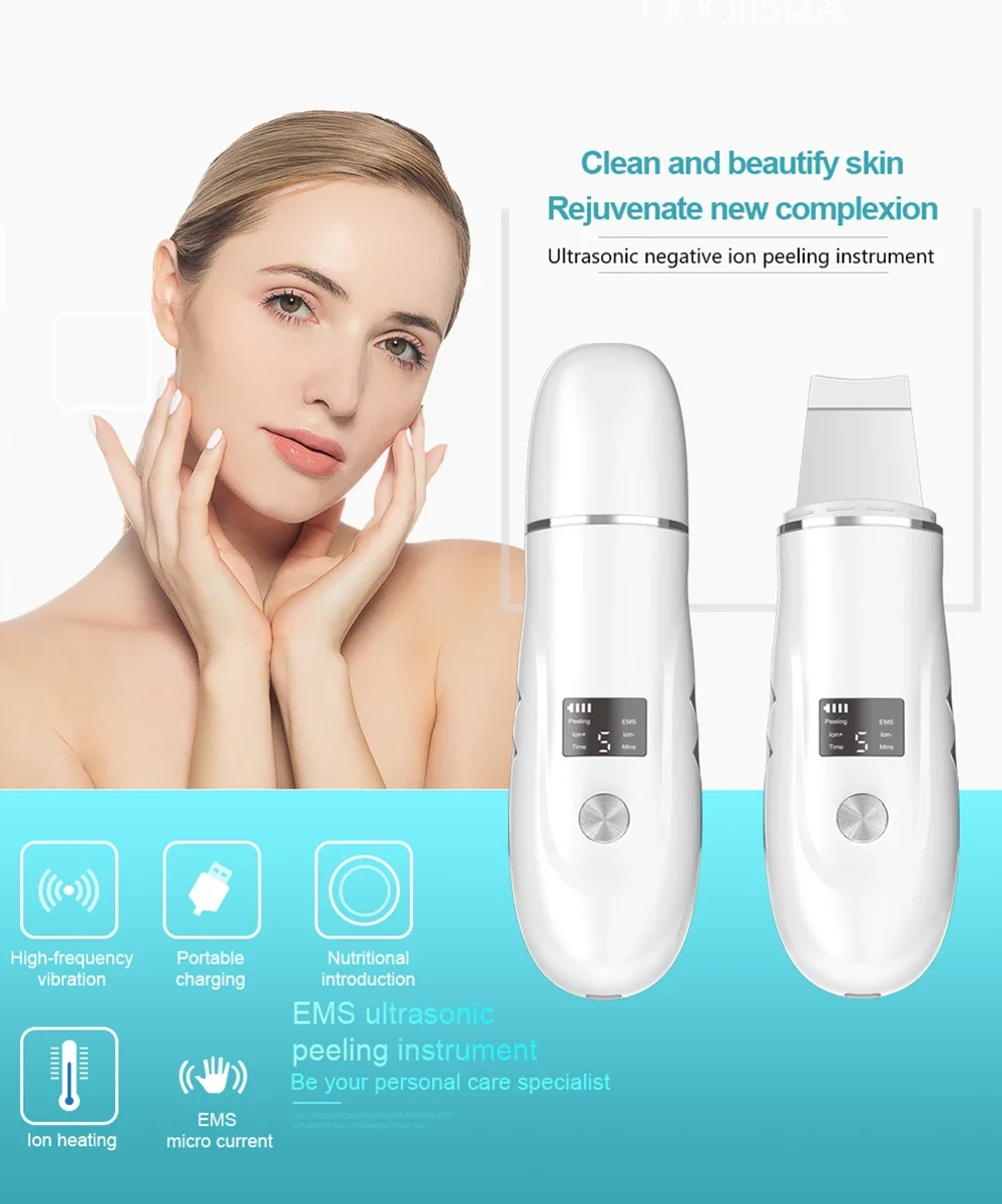 Ultrasonic Peeling Remover Blackhead Facial Skin Scrubber Facial Shovel Deep Cleaning Face Lifting Removal Pore Acne EMS Lift