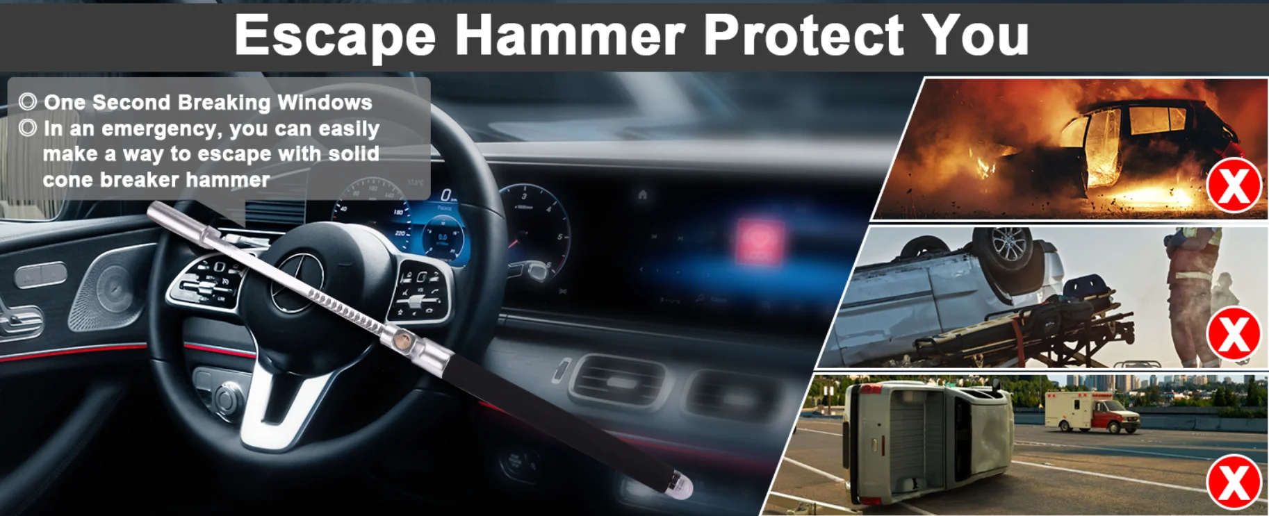 Universal Steering Wheel Lock for Cars Vehicle Anti-Theft Device Retractable Wheel Lock With Emergency Hammer Auto Truck SUV Van