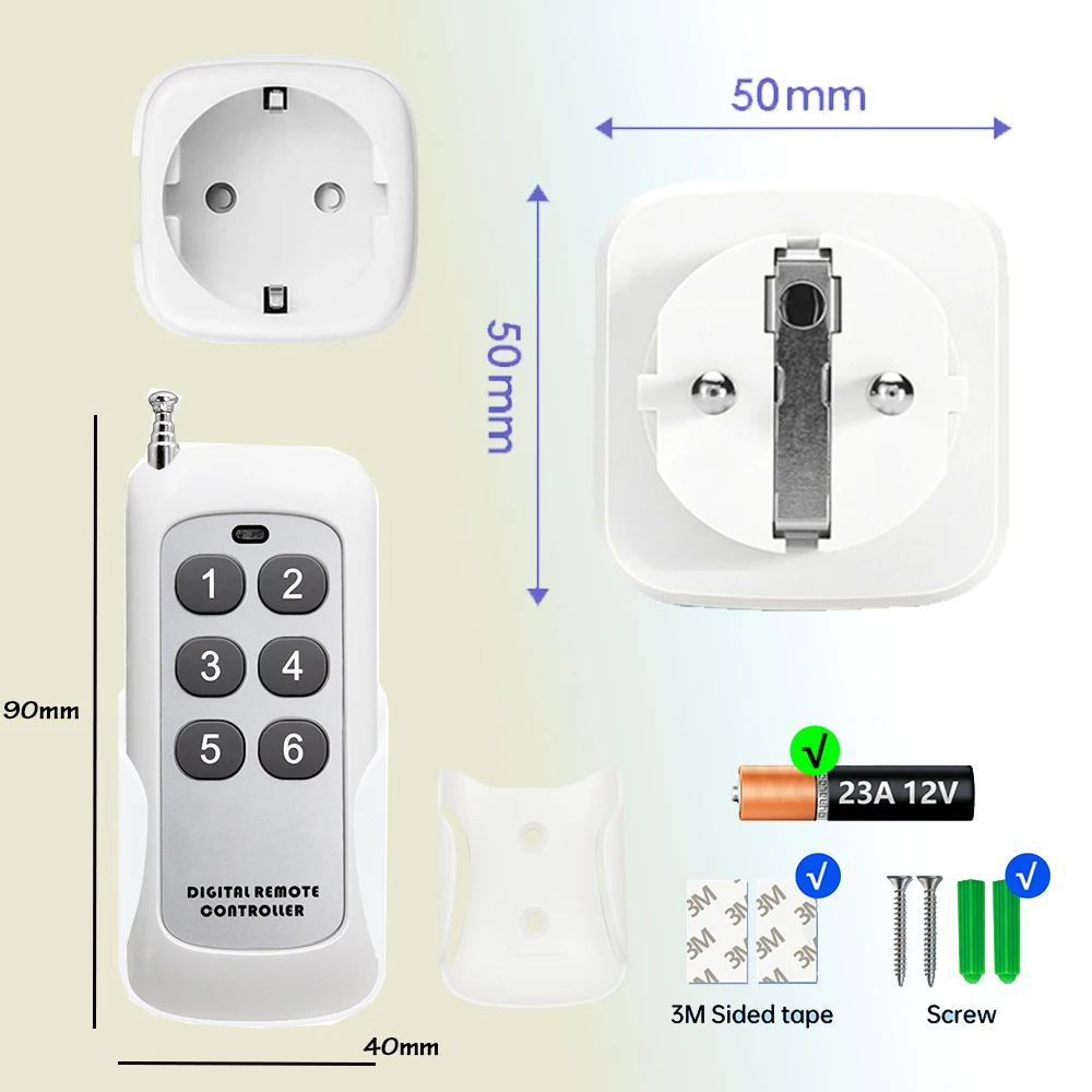 1: When you are worried about needing to turn on and off home appliances every day, you can use this wireless socket to control the switch of a single household device with one click without downloading WIFI, or to control the switches of all household devices with one click;