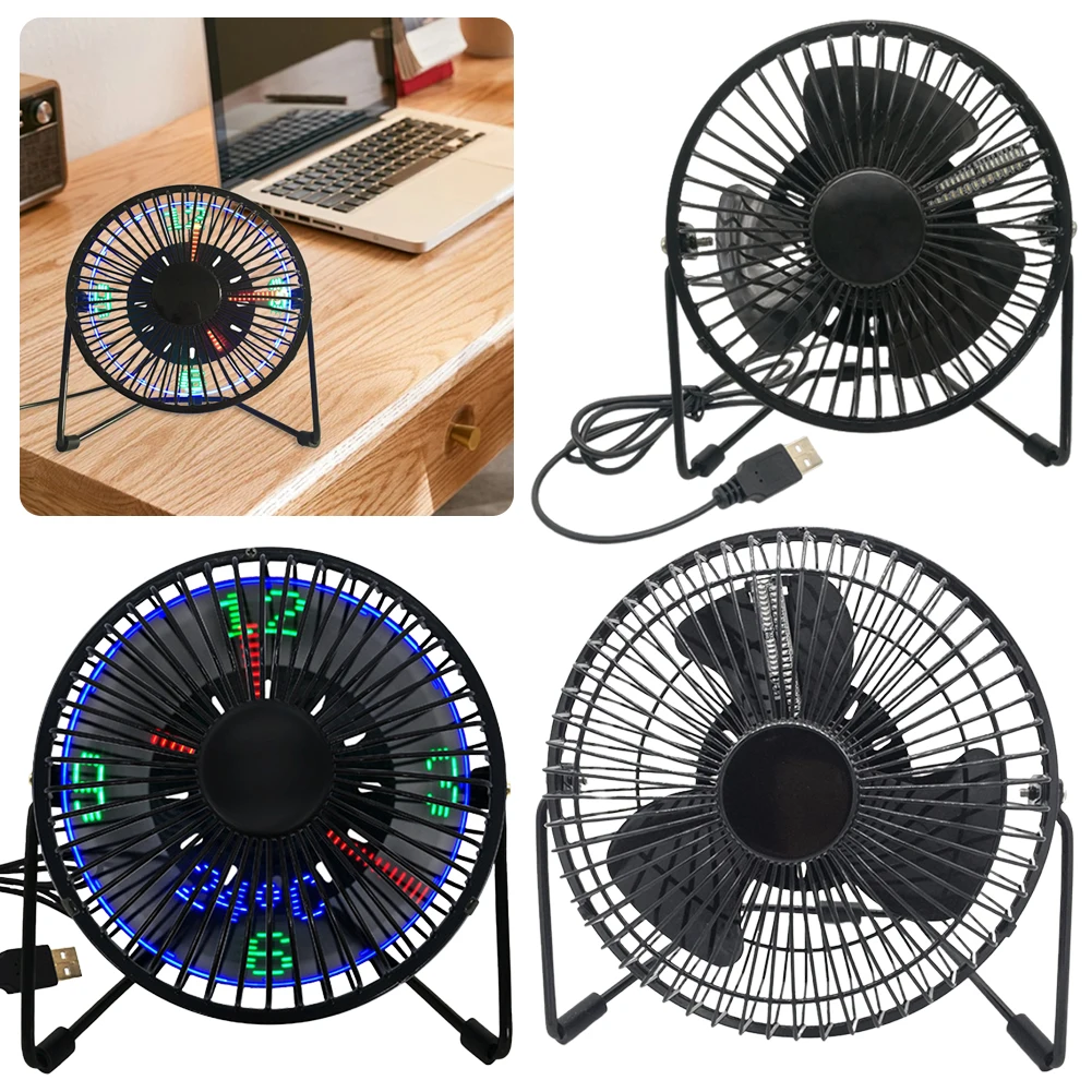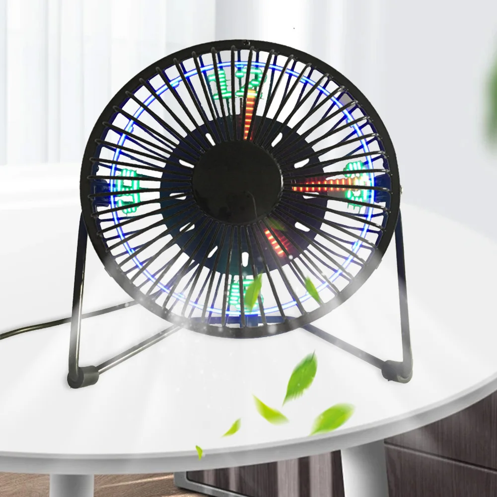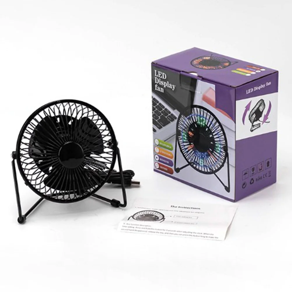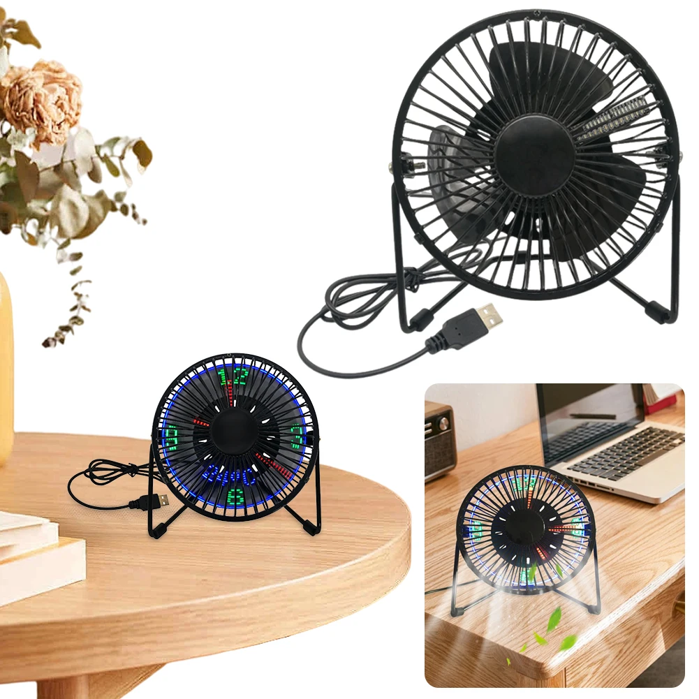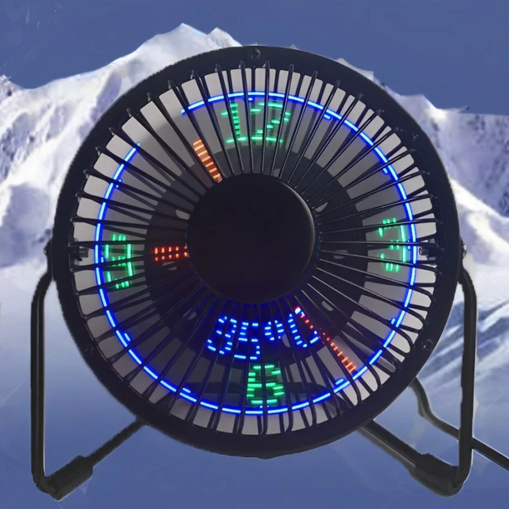 USB Clock Fan with Real Time Clock Temperature Display 360 Rotation Mini USB LED Clock Fan Portable Desk Fan for Home and Office