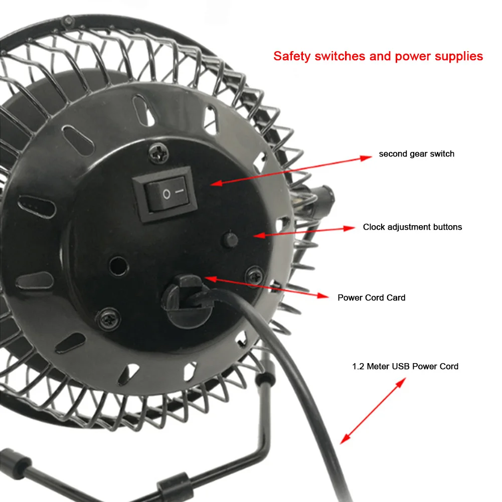 5. Enhanced Safety Features: Prioritizing safety, our USB clock fan comes with a cage-like enclosure, providing a safer option than traditional exposed-blade fans. This feature is especially beneficial for rooms with low ceilings and bunk beds, offering peace of mind by protecting children from the risk of blade contact.