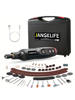 This power tool come with 5 collet sizes(1mm,1.6mm,2.35mm,3mm.3.2mm), to fits different suitable accessories and it is easily changed.