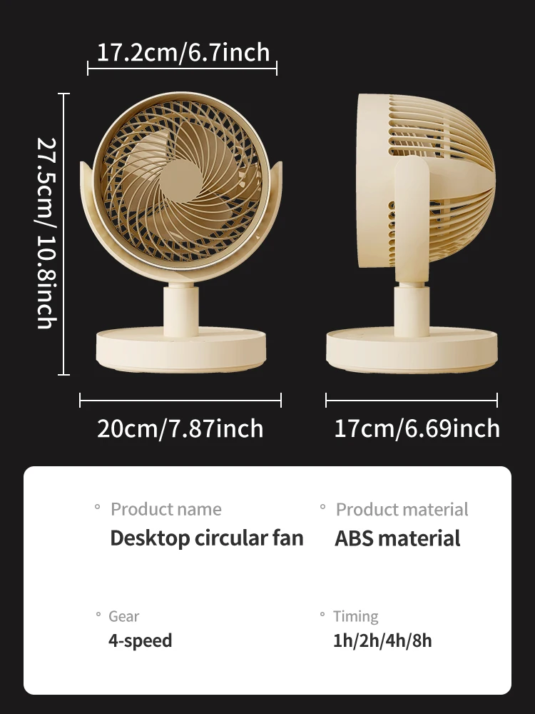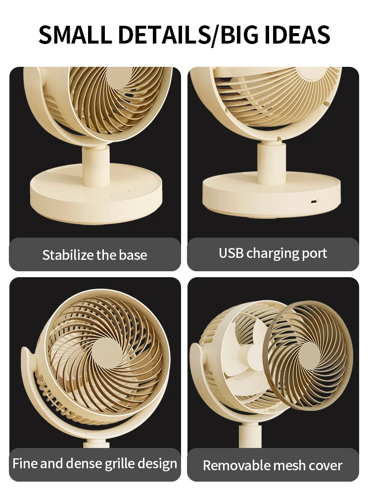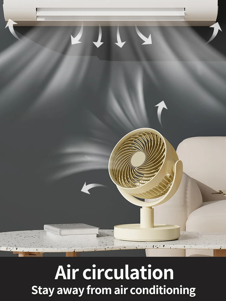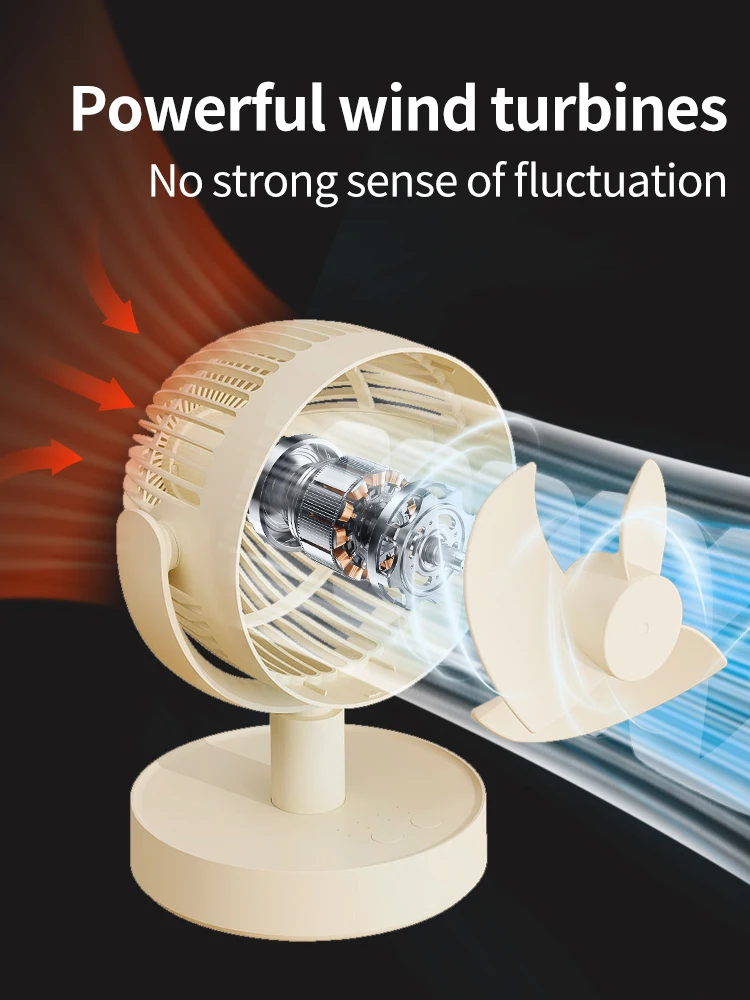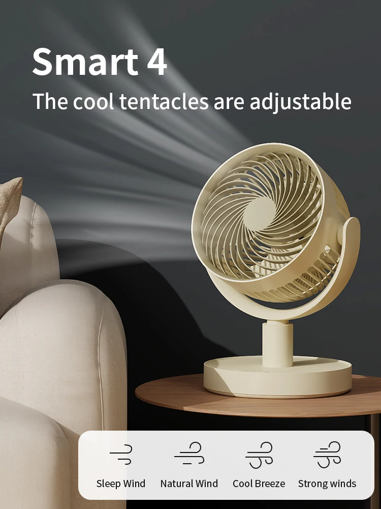 USB Desk Fan 4 Speed Adjustable Desktop Table Fan with Strong Wind Quiet Operation Kipas USB Oscillating Fan 1800 mAh