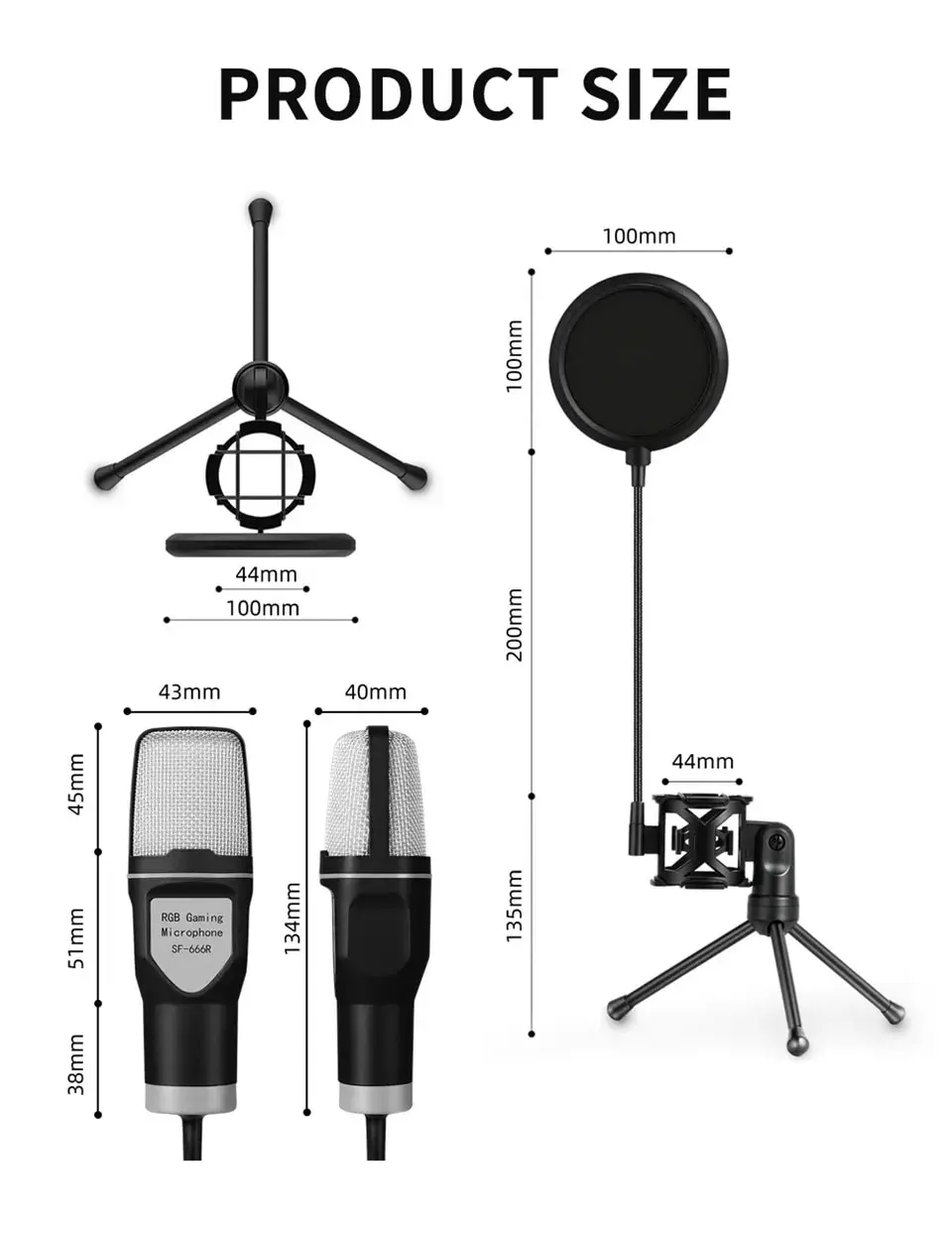 USB Microphone RGB Microfone Condensador Wire Gaming Mic for Podcast Recording Studio Streaming Laptop Desktop PC