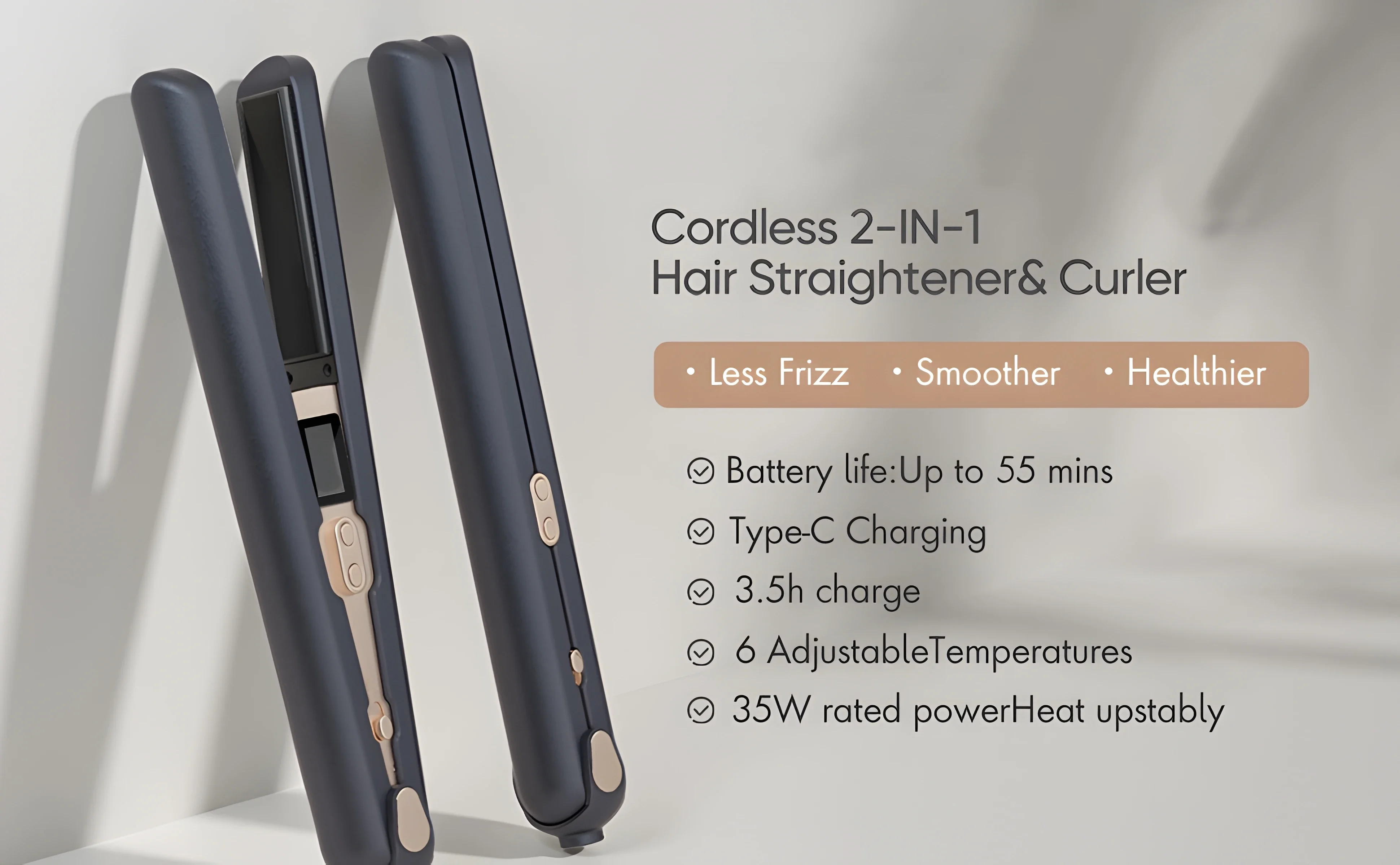 Product Name:Cordless Hair Straigh tener and Curler