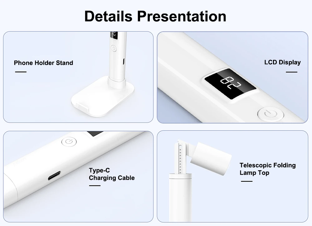 【Lightweight&Portable】This mini led nail lamp with stand is small and light,it can be carried anywhere, whether you are on a business trip or traveling, you can put it in your backpack easily without any effort, and enjoy manicure anytime, anywhere, Bring you a different manicure experience.