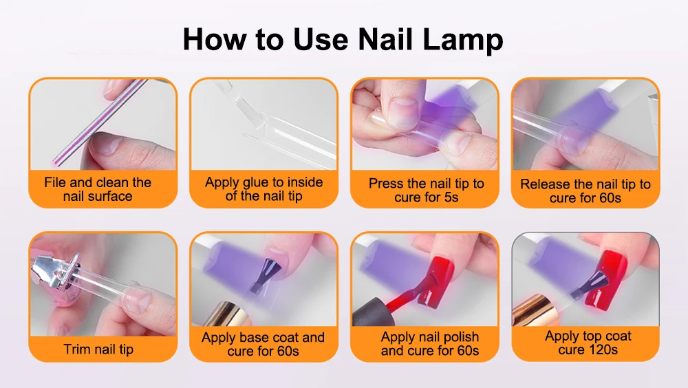 【Two Setting Modes】This small uv light for gel nails is designed with 2 timer setting modes (45s/60s)and power of 1W which can help us dry nail gel quickly and effectively. The first press is the 45s timer setting. Long press is 60s timer setting, press once to turn off. Curing 60s can completely dry any nails tips.