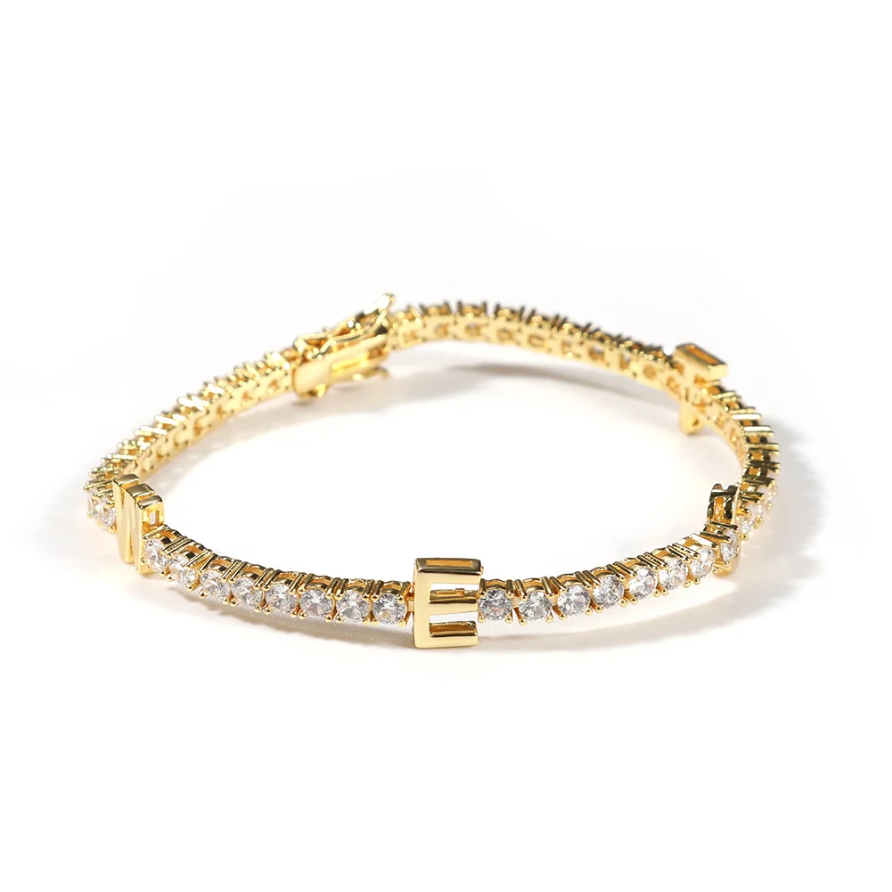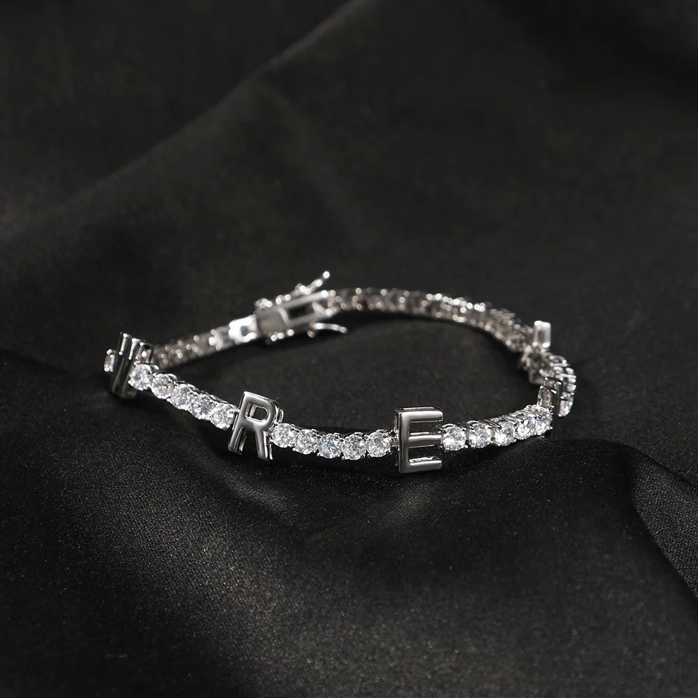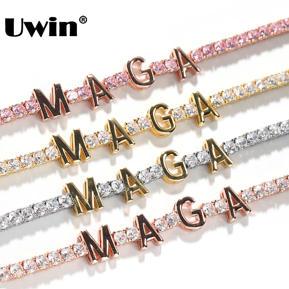 UWIN Personalized Name Bracelets 3mm Tennis Chain Braclet for Women Custom Name Bangles Iced Out Women Fashion Jewelry for Gift