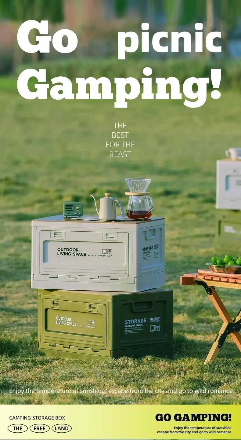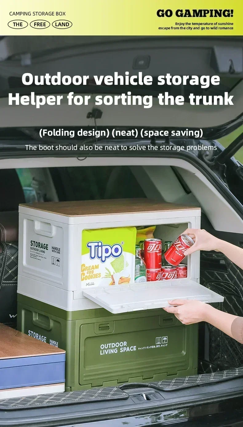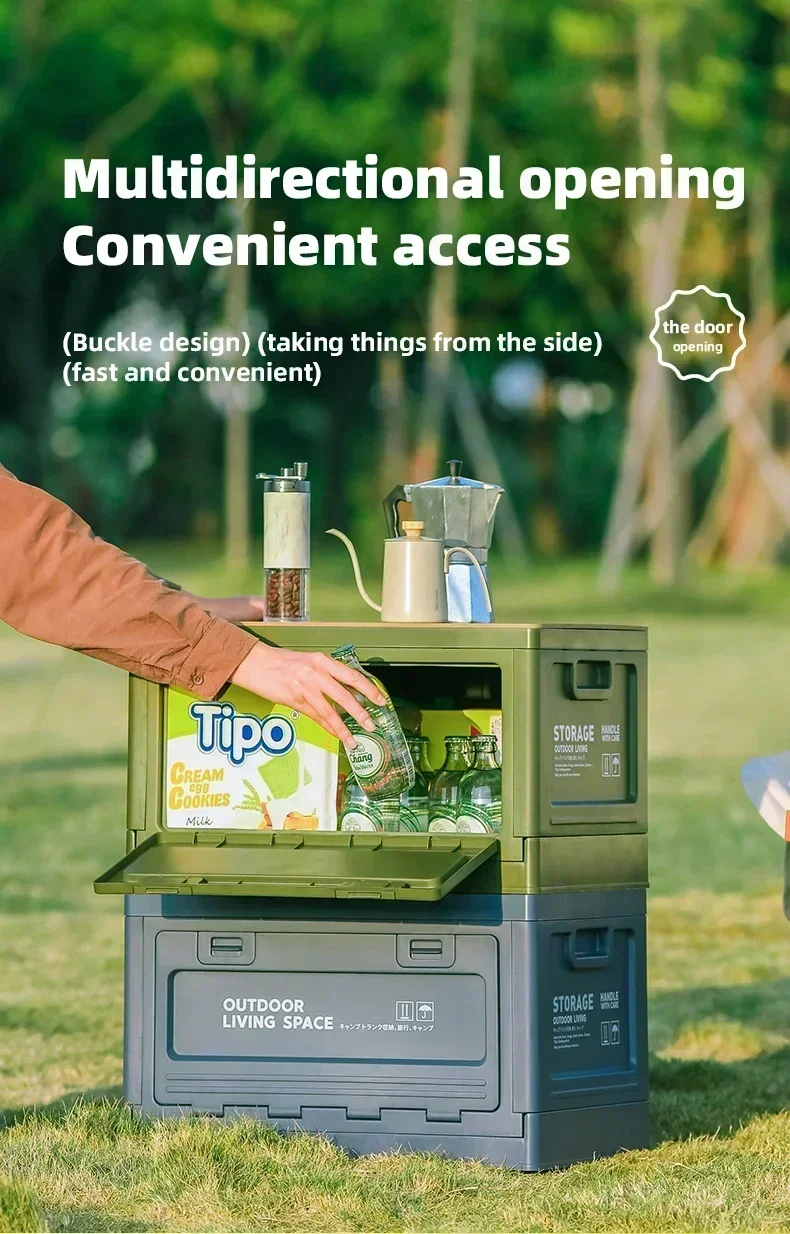 Versatile Outdoor Storage Box: Camping Organizer, Foldable Car Bench & Cutting Board Combo