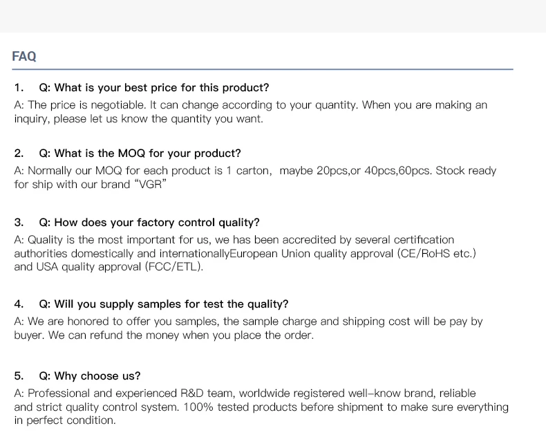 Quality is the most important thing to us, we have obtained quality certifications (CE/GS/RoHS/FCC etc.) from several certification bodies inside and outside China.