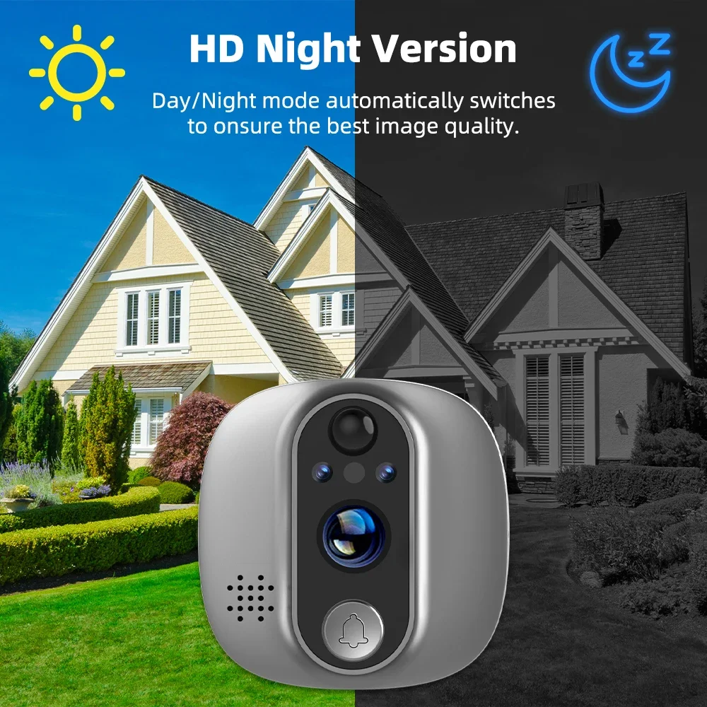 Graffiti visual cat-eye doorbell: Sleeping state, press the host button to see the door.