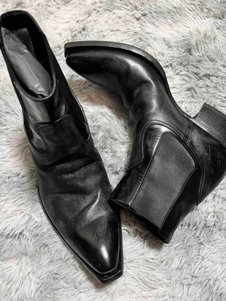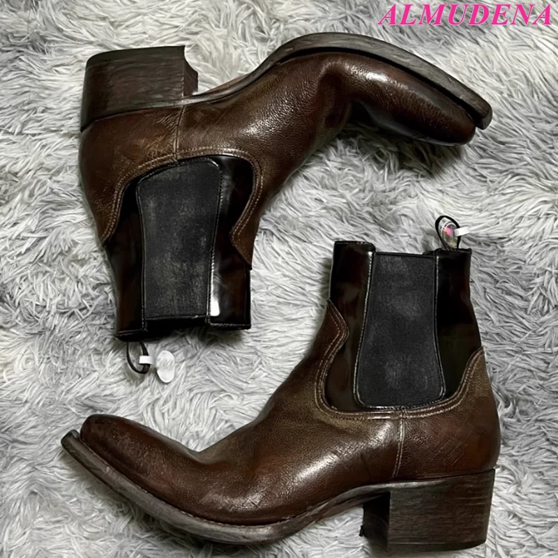 Vintage Brown/Black Chunky Heel Ankle Boots Women’s Big Size Pointed Toe Chelsea Boot Causal Dress Luxury Designer Shoes
