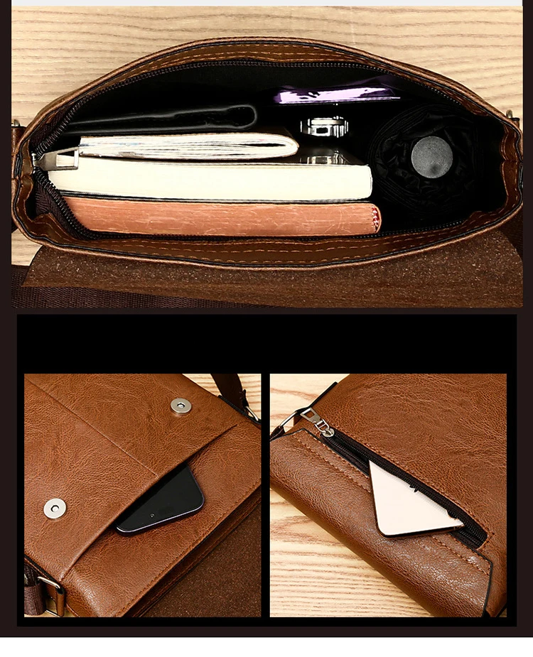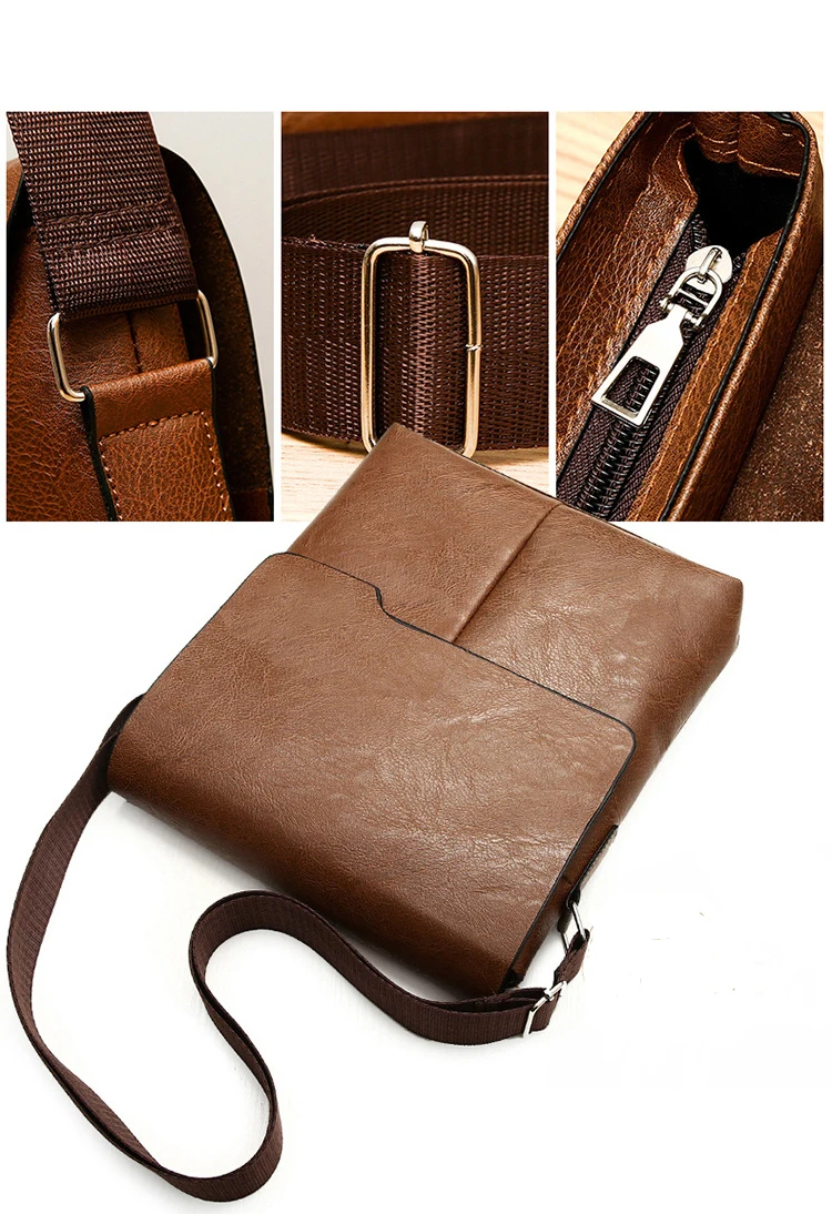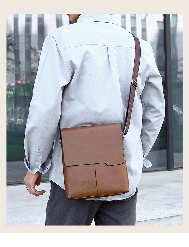 Vintage Messenger Bags Men Leather Shoulder Bag Minimalist Solid Colors Male Handbag Brown Black Side Bag Business Crossbody Bag