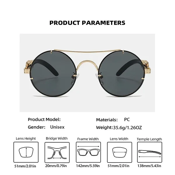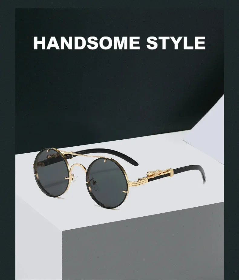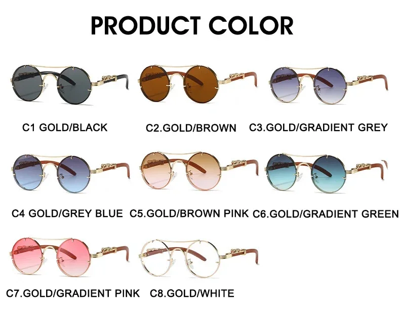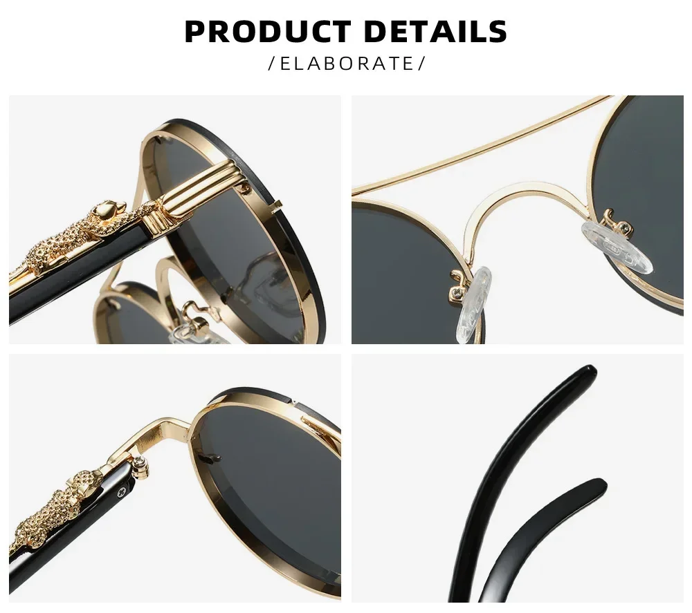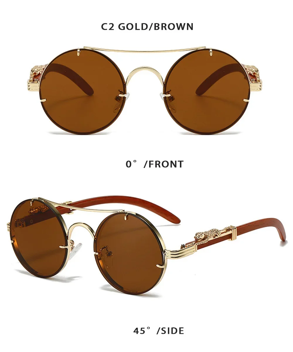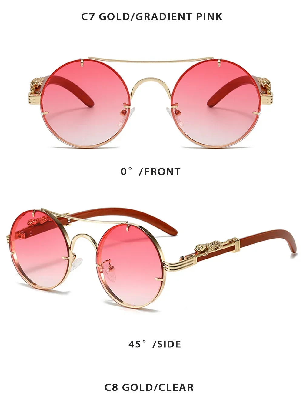 Vintage Punk Round Sunglasses Men Fashion Double Bridge Multicolor Shades Women Retro Trendy Brand Luxury Design Sun Glasses