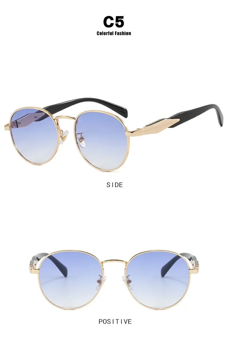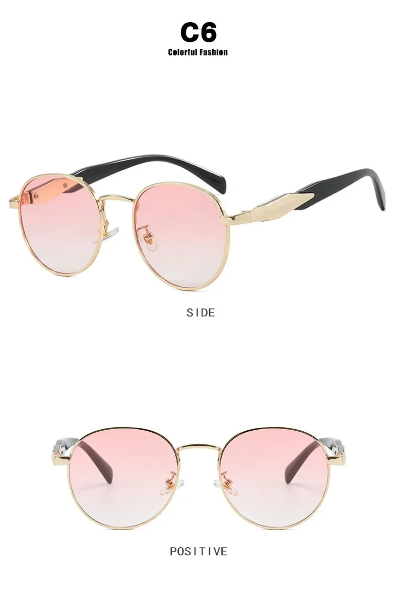 Vintage Round Metal Sunglasses Women New Fashion Retro Sun Glasses Female Brand Designer Ins Trendy Eyewear Male UV400
