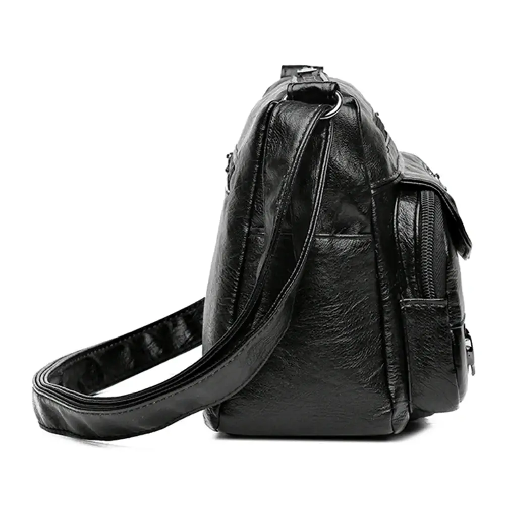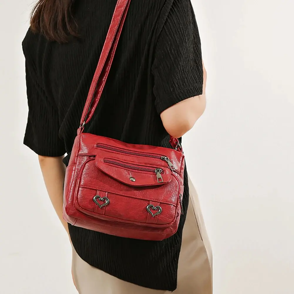 Vintage Women Shoulder Bag PU Soft Leather Crossbody Bag Large Capacity Multi-pockets Messenger Bag Designer Lady Handbag Purse