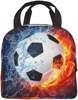 Football Lunch Bags Reusable Cooler Warm Tote Lunch Box with Drink Bottle Holder Children Portable Thermal Picnic Bags for Boys Girls