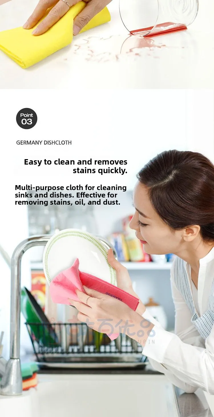 The German cloth boasts high absorbency, efficiently soaking up water and oil, making it perfect for kitchen use.