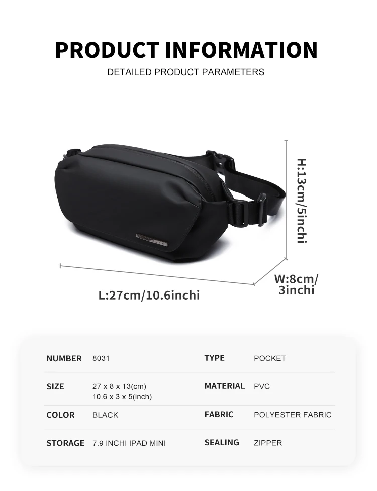 [Compact & Lightweight ] Size:10.6*3.1*5.1inch, Weight:0.5kg.This crossbody sling bag for men women design made of high quality new oxford material,which is waterproof,lightweight and slim.It sits nicely on your back/chest and isn’t to chunky or clunky on body frame.The smart buckle and adjustable strap allow you to wear the crossbody bag for men comfortably and take off the bag quickly.