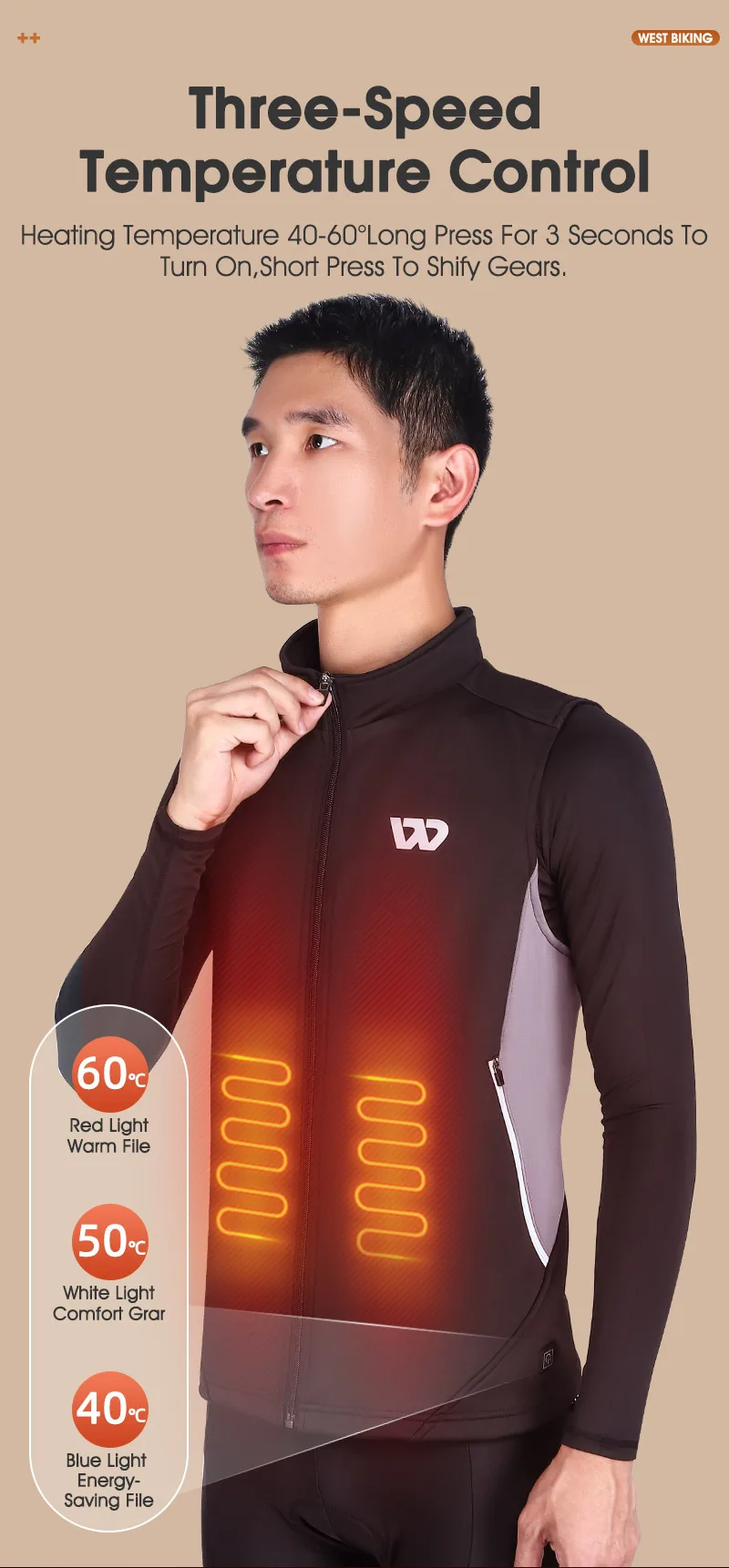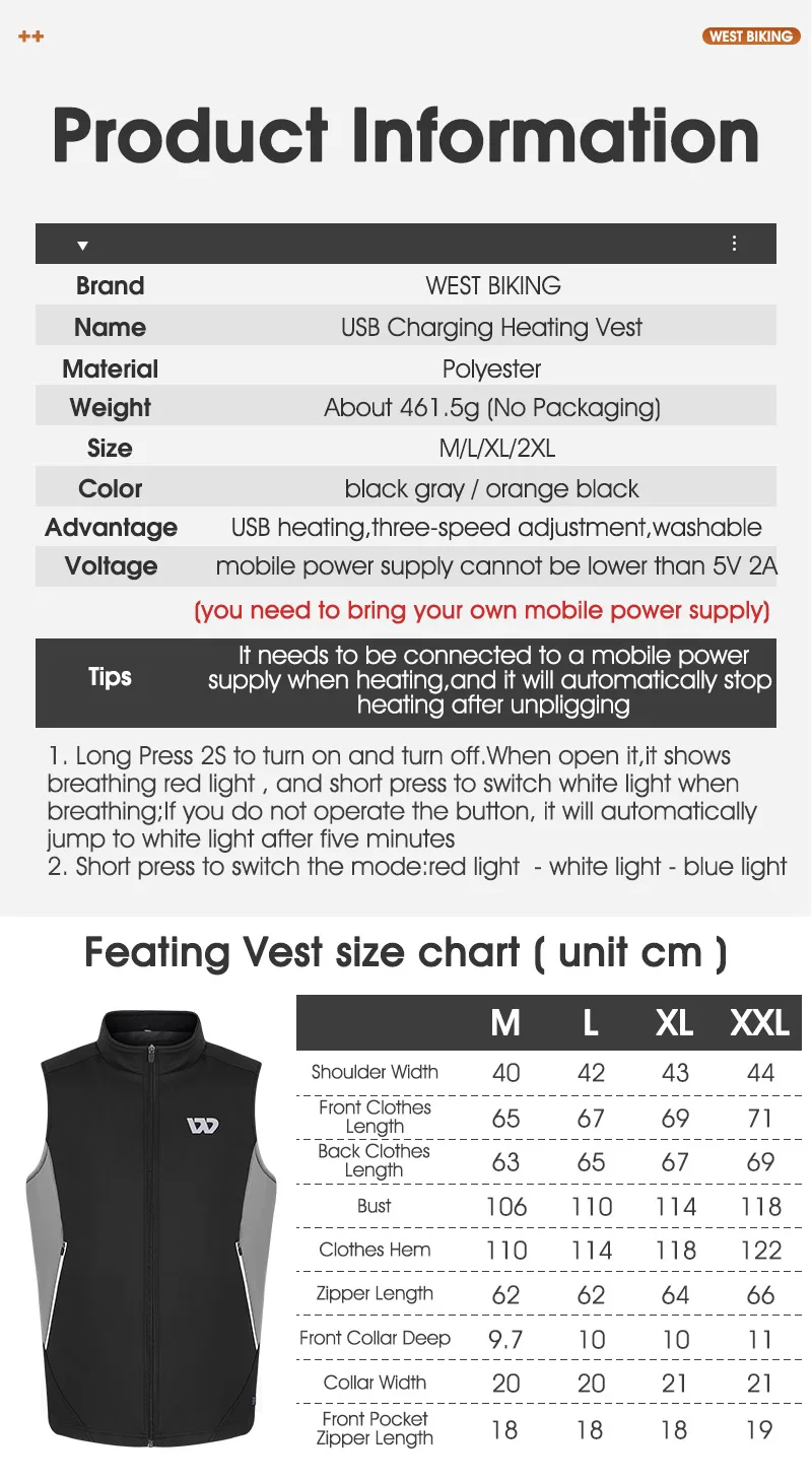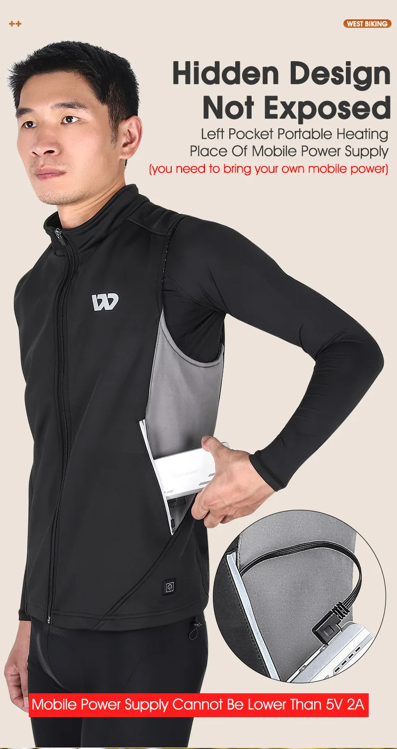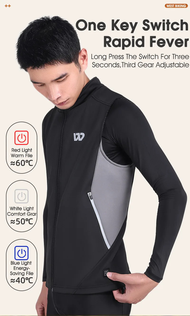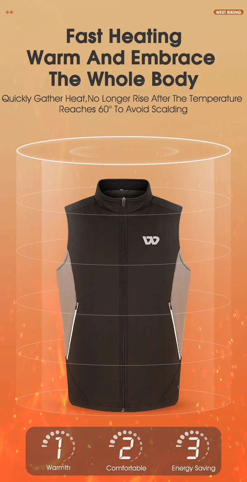 WEST BIKING Winter Heated Vest Men Women Sportswear USB Heated Jacket Motorcycle Cycling Thermal Hunting Camping Clothing M-2XL