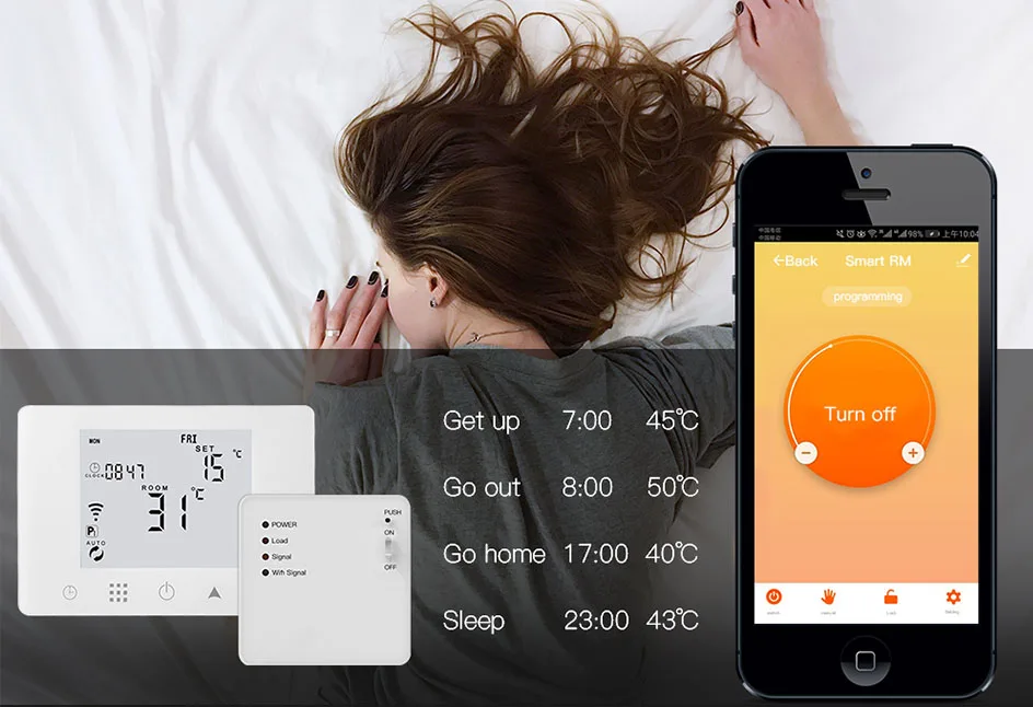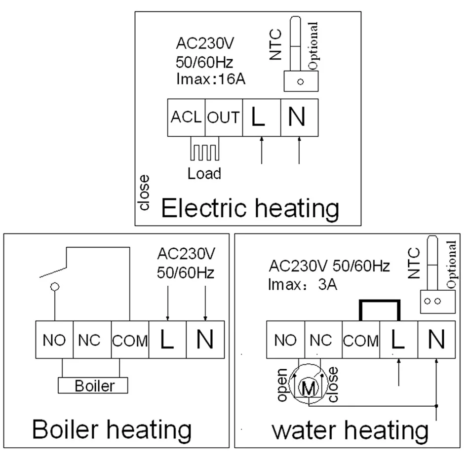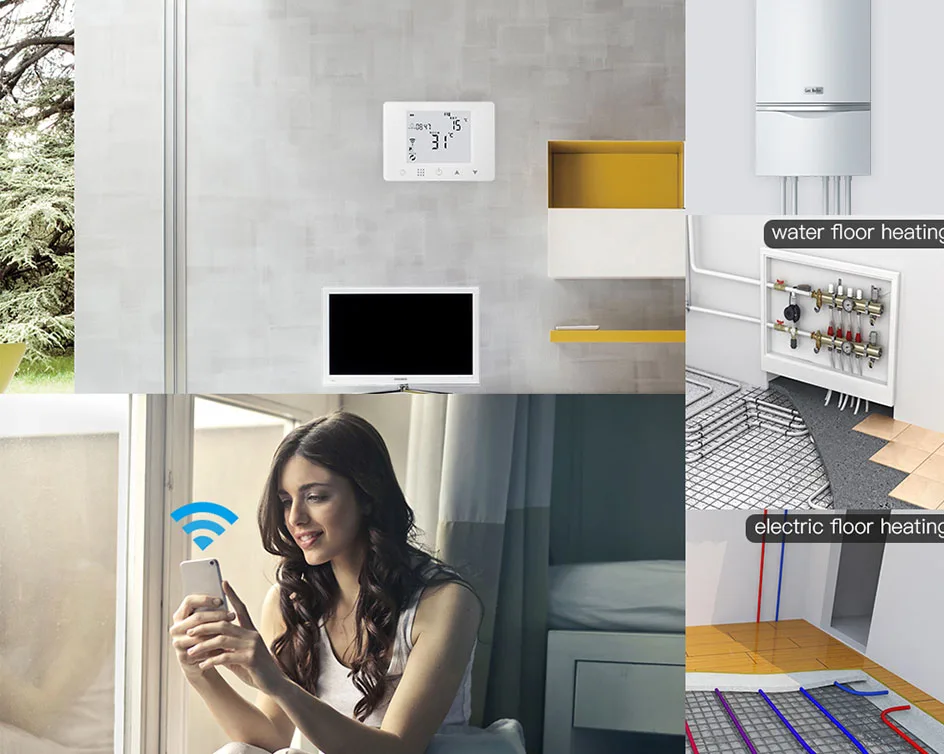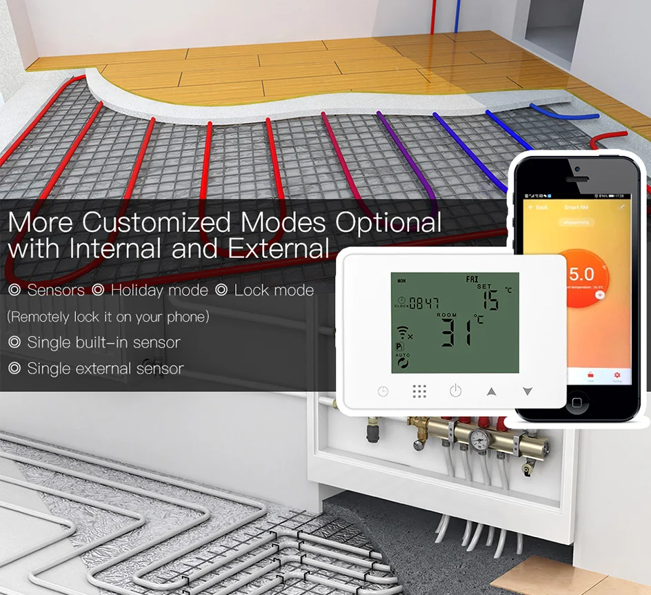 There are two types of the thermostat:One is for gas boiler and underfloor water heating system, and the other is for underfloor electric heating system. Please choose the right option when place order.