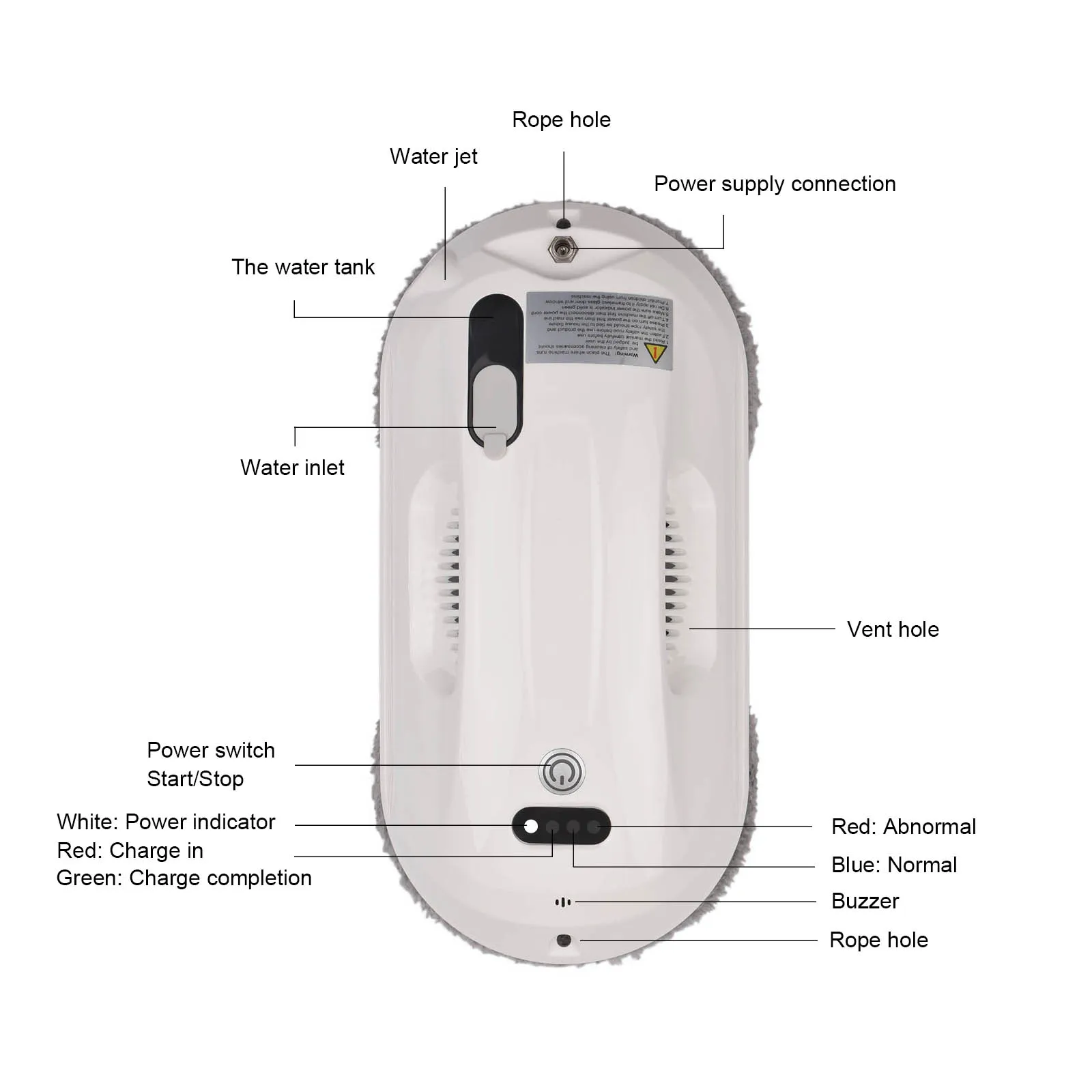This glass cleaning robot is designed with ultrasonic spray nozzle (35ml water tank), you no longer need to spray water manually, cleaning windows more cleanly and thoroughly.