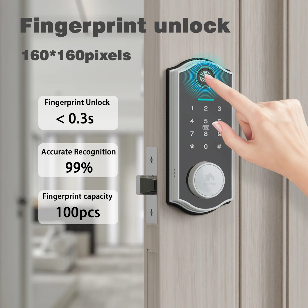 WINFREE Door Smart Lock Deadbolt Fingerprint Keyless Unlock Password Card Access for Wooden Door TTLock Control