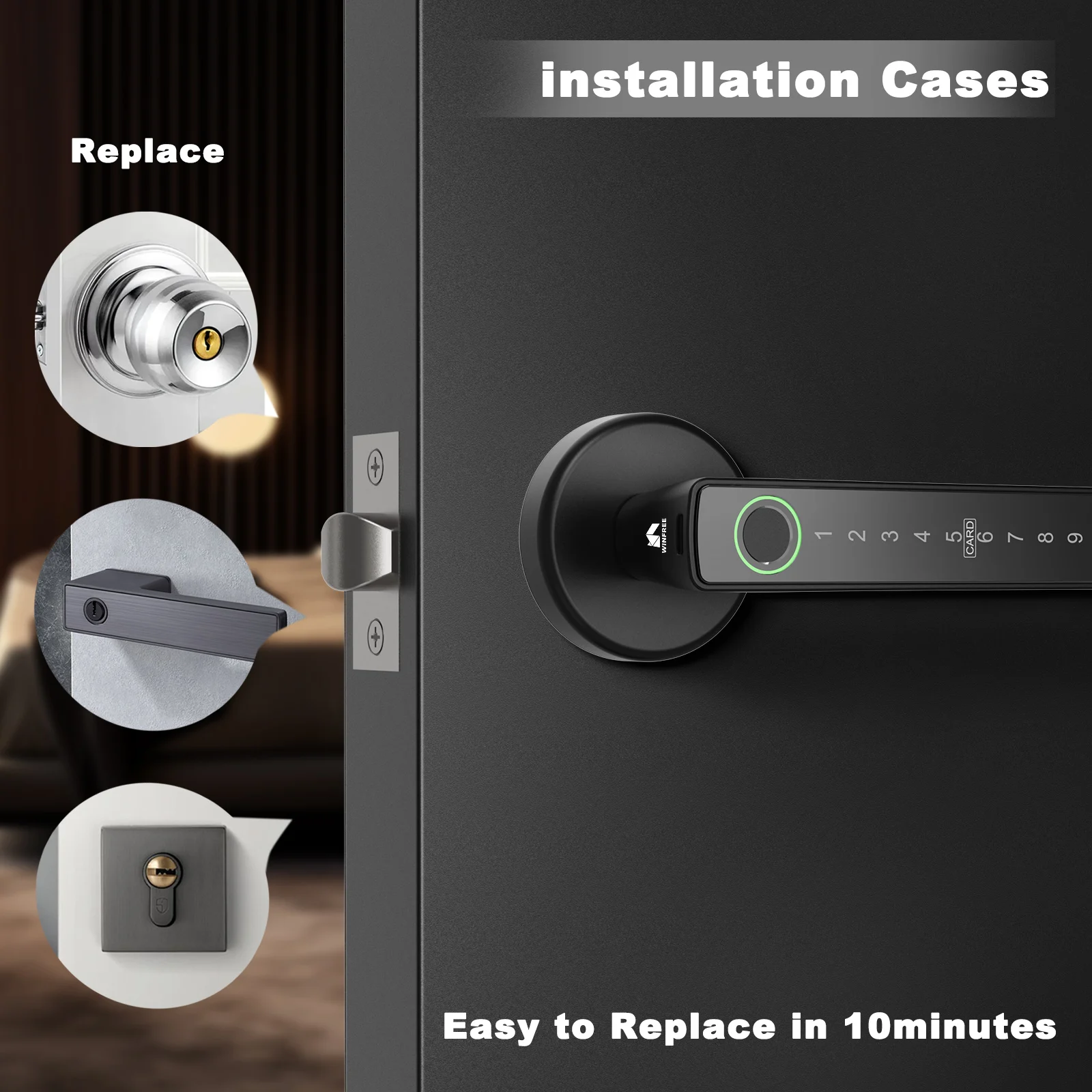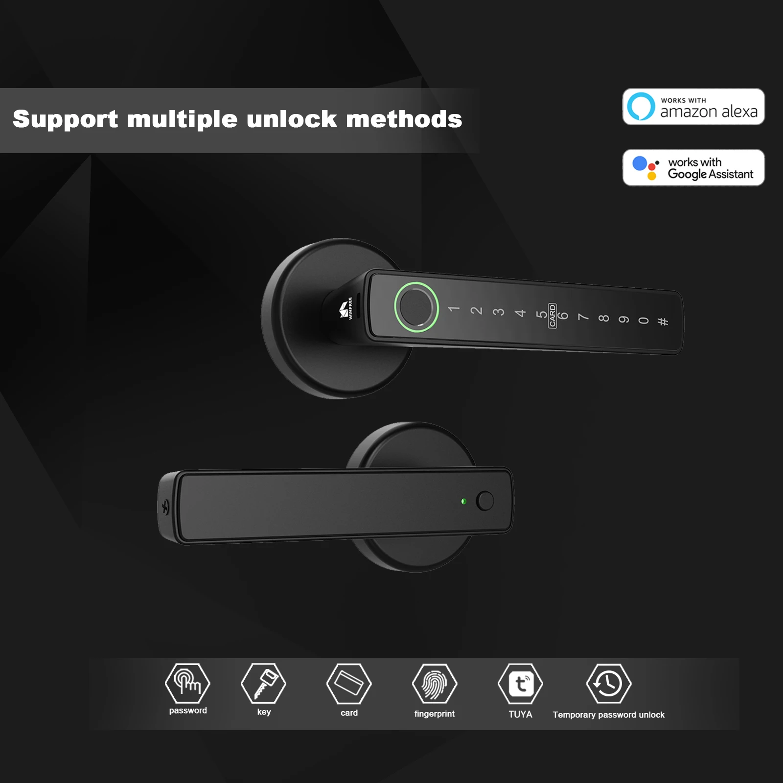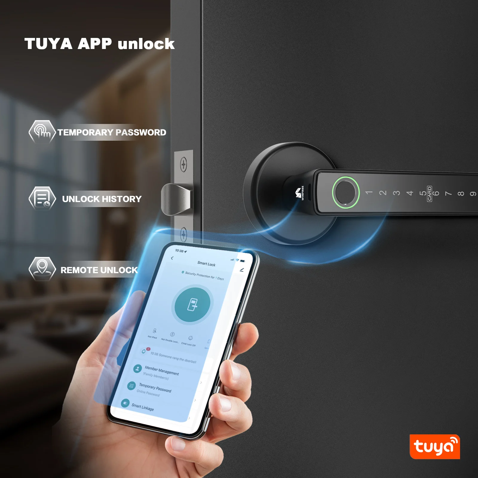 Unlock methods: Tuya APP/Fingerprint/Passcode/Card/Key unlock