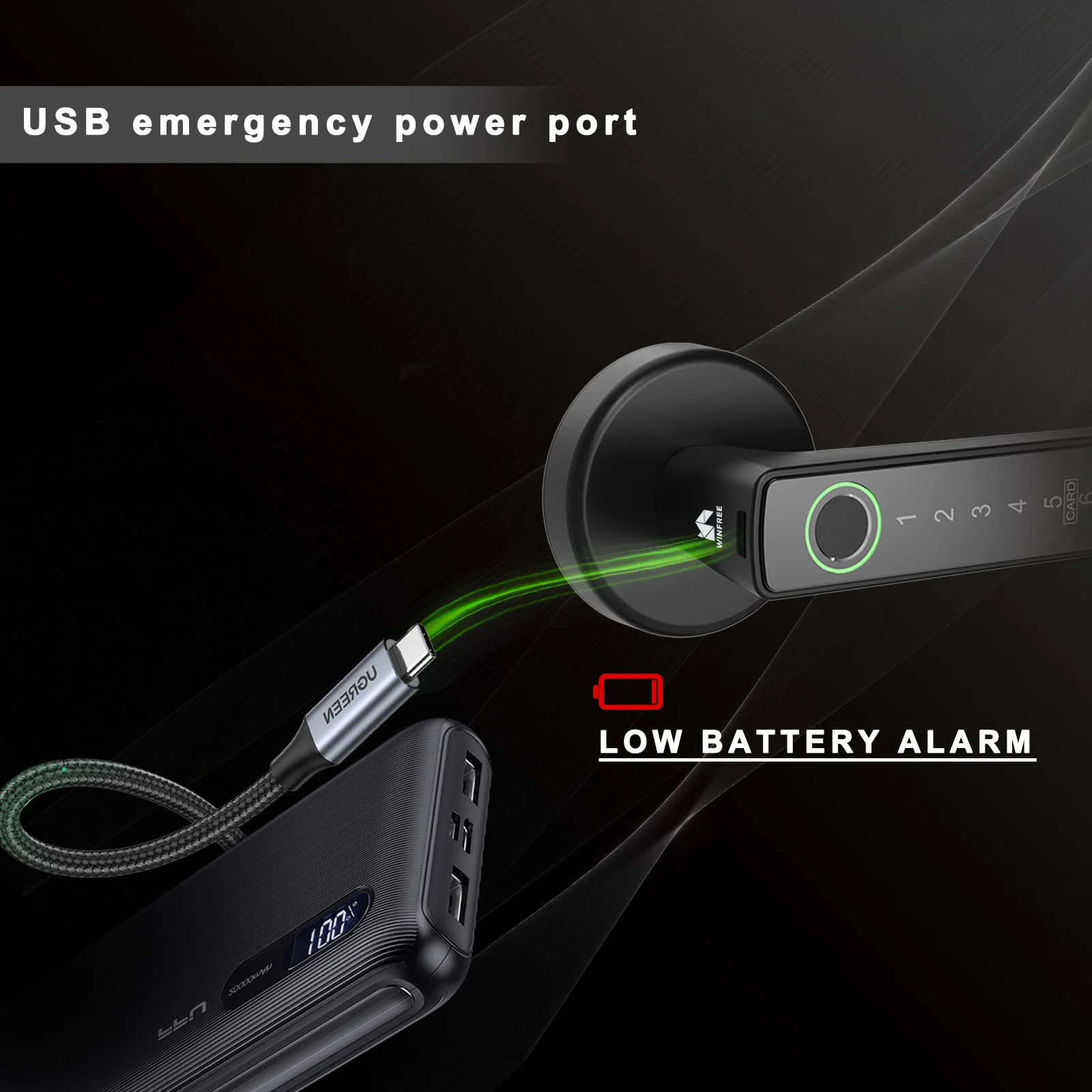 Mechanical keys and emergency power supply (USB) can be used when the door lock is out of power.