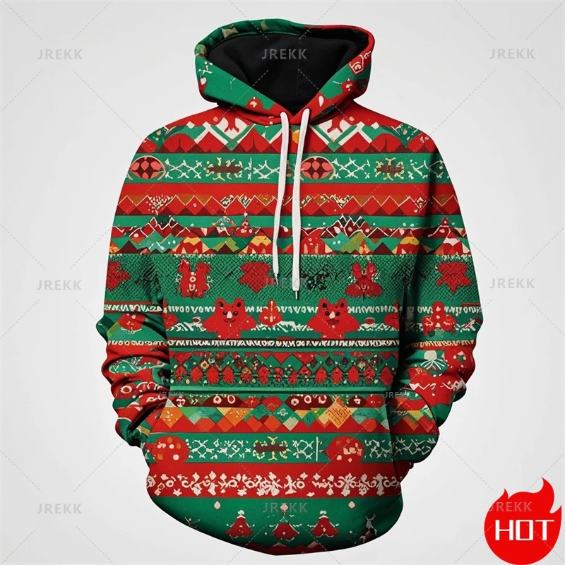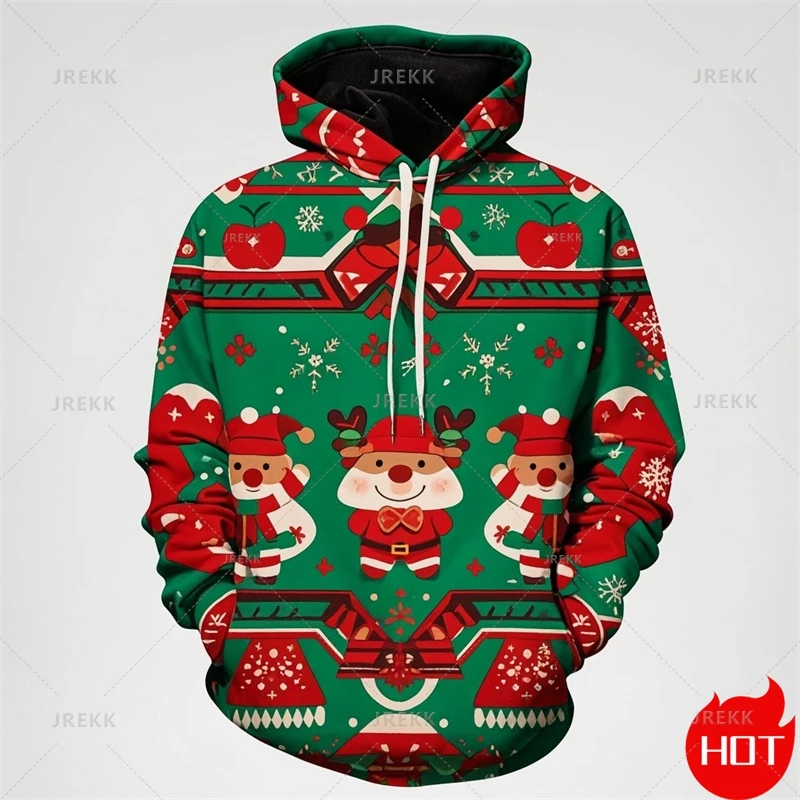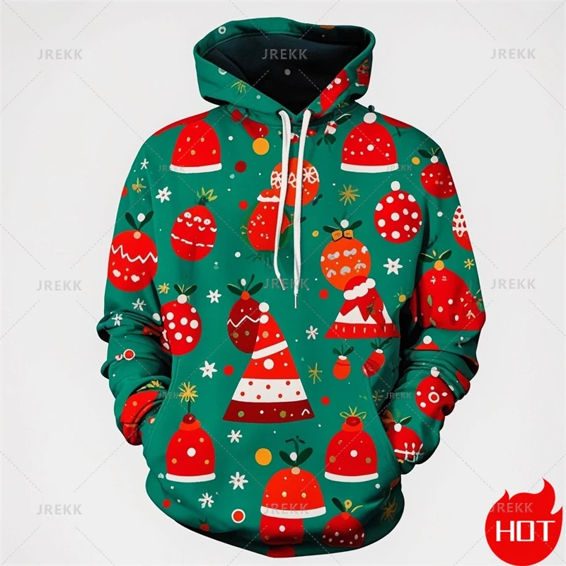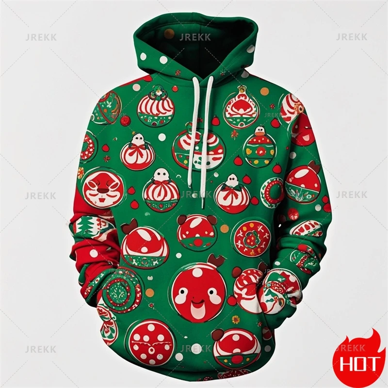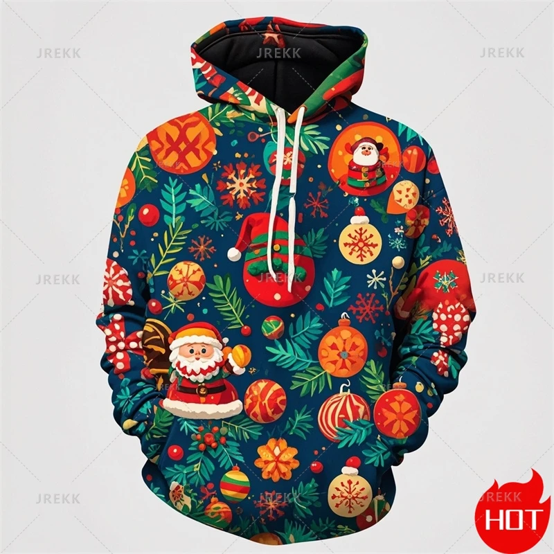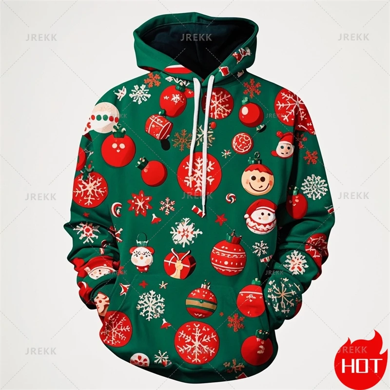 Winter Fashion 3D Christmas Ornament Printing Hoodies For Men Santa Claus Graphic Hooded Hoody Vintage Sweatshirts Mens Pullover