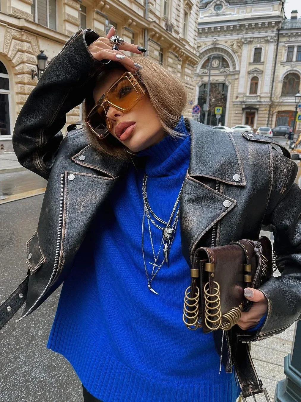 Winter Sweater Turtleneck Pullovers Warm Loose Fitting Cotton Pullover Knit Sweaters Women Long Sleeve Oversized Streetwear