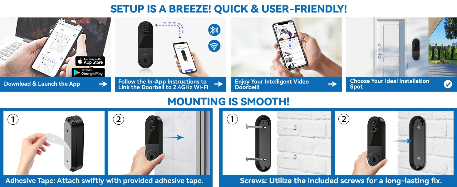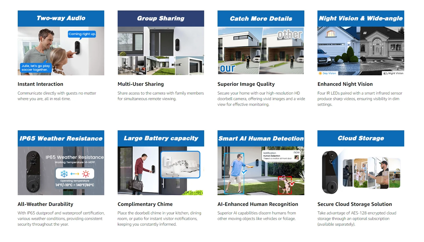 Engineered for 2.4G Wi-Fi (5G Wi-Fi not supported), this doorbell camera includes a complimentary Doorbell Chime, ensuring you never miss a visitor.