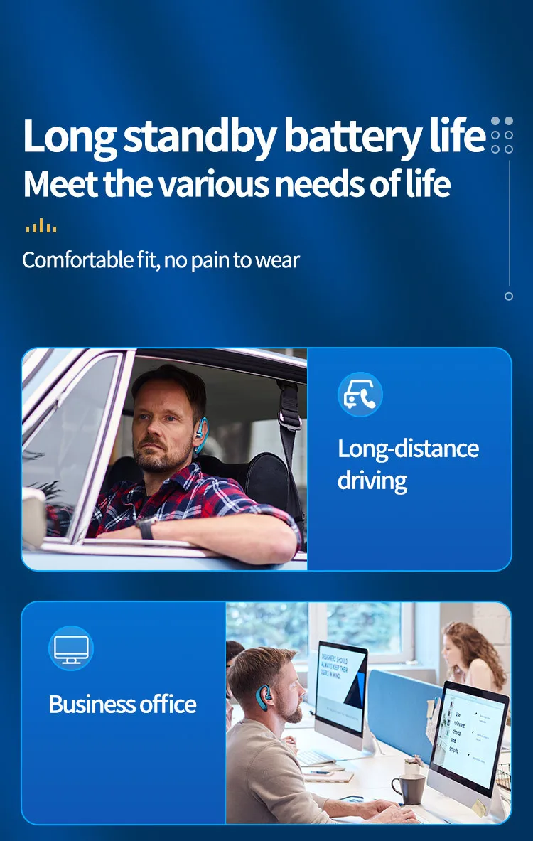 Function: music play / pause,caller tips ,dual-ear calls,intelligent noise reduction, voice prompt, LED digital display