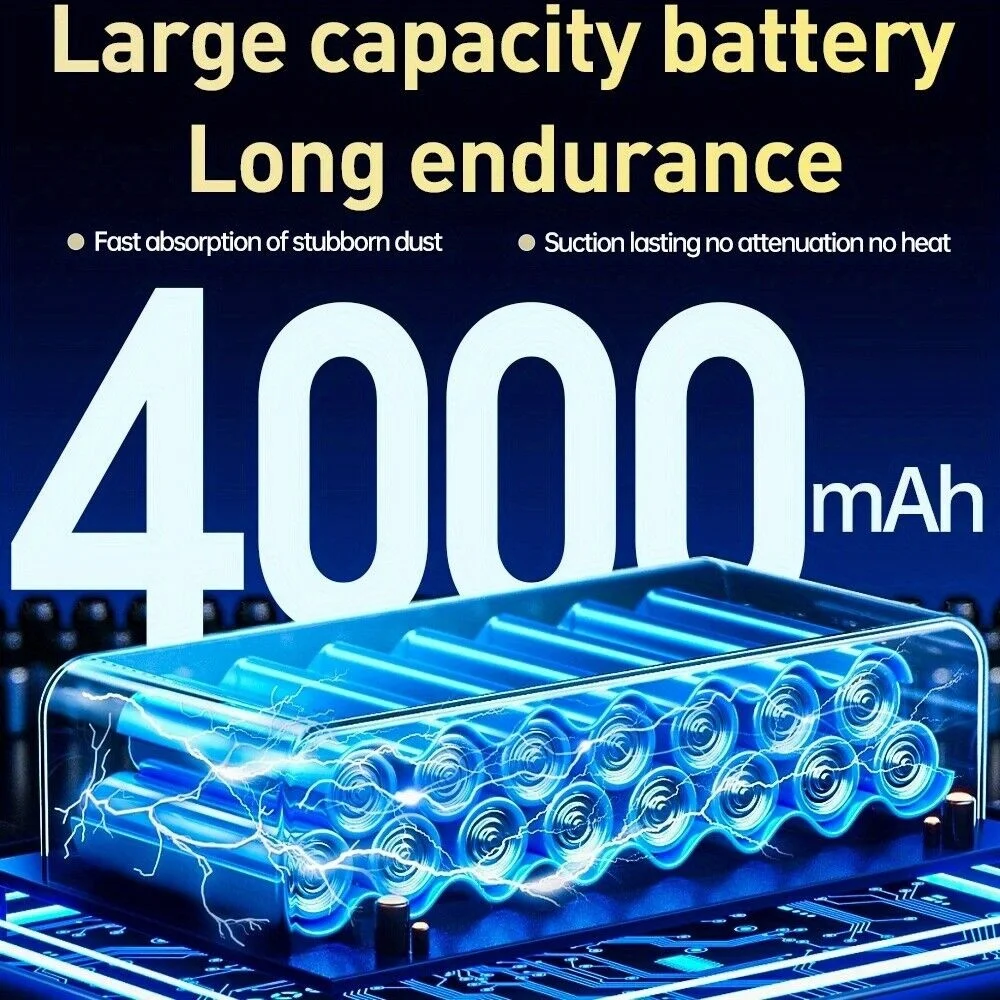 Long-lasting & Efficient CleaningPowered by 4000mAh large capacity battery, hand vacuum cleaner with type-c port, that can fast charge for 3 hours, you will gain 20-30mins of efficient cleaning experience. |