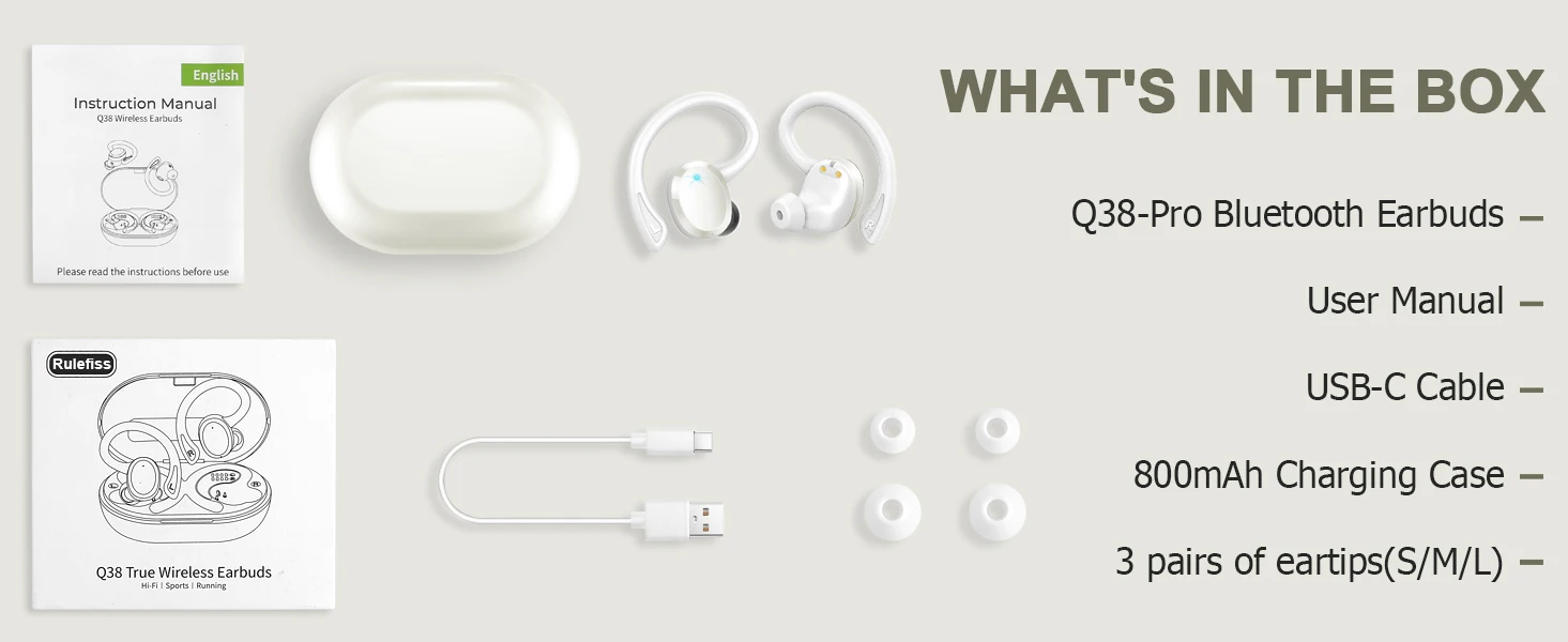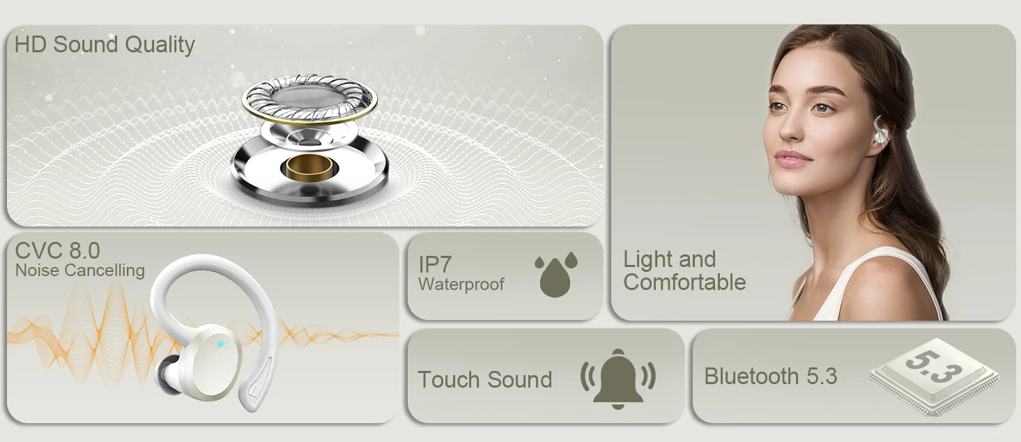 Wireless Earbuds, Bluetooth 5.3 Earbuds Stereo Bass, in-Ear Noise Cancelling Mic, Earphones IP7 Waterproof Sports, 40H Playback.