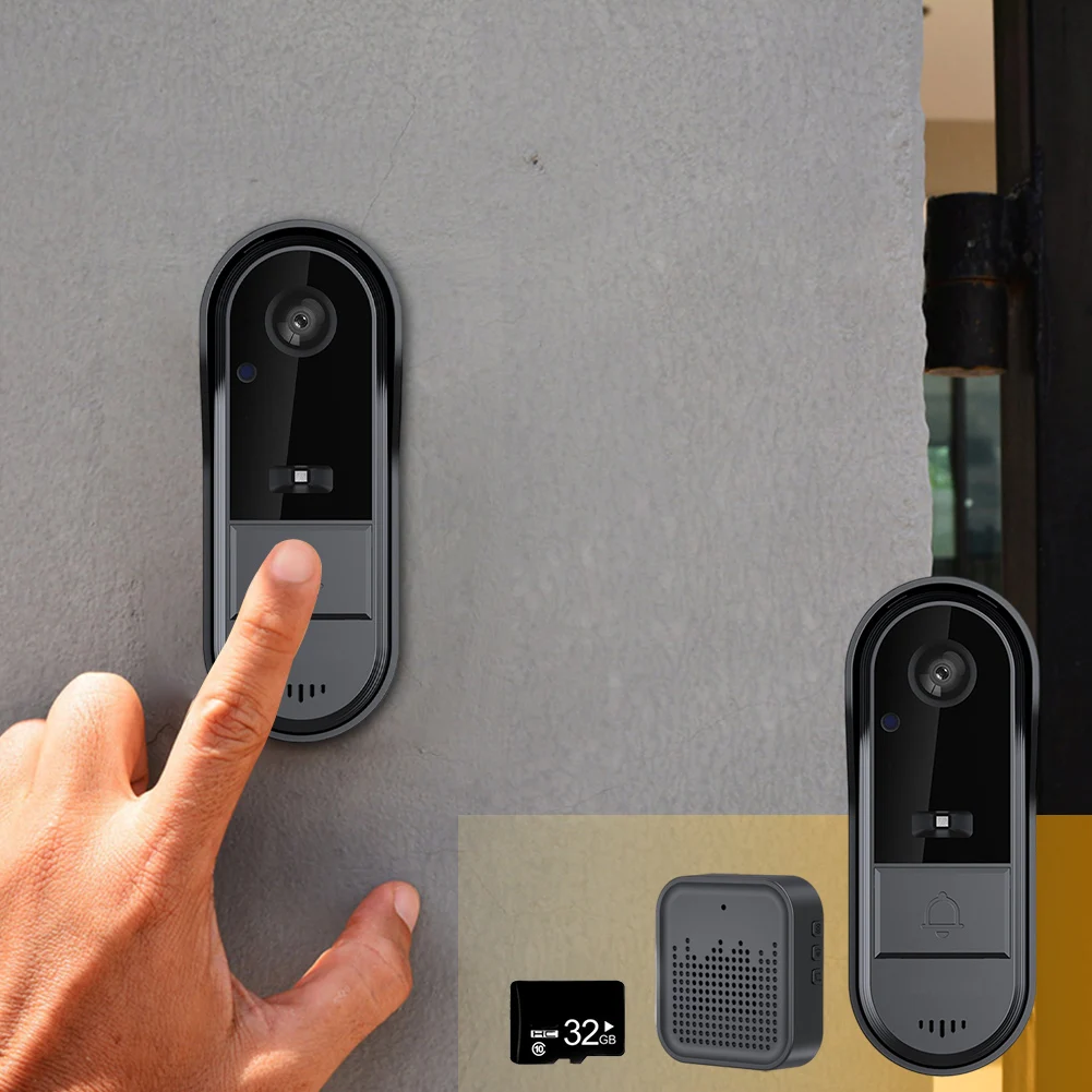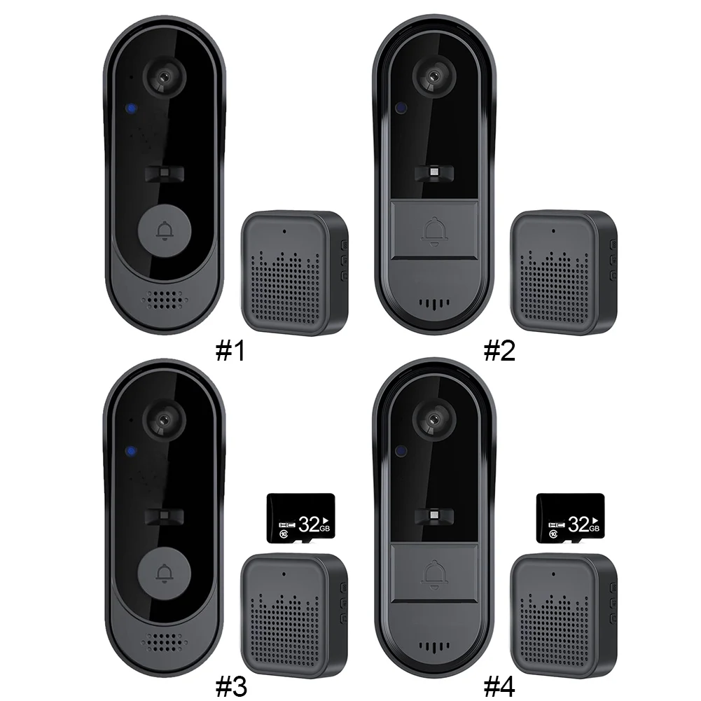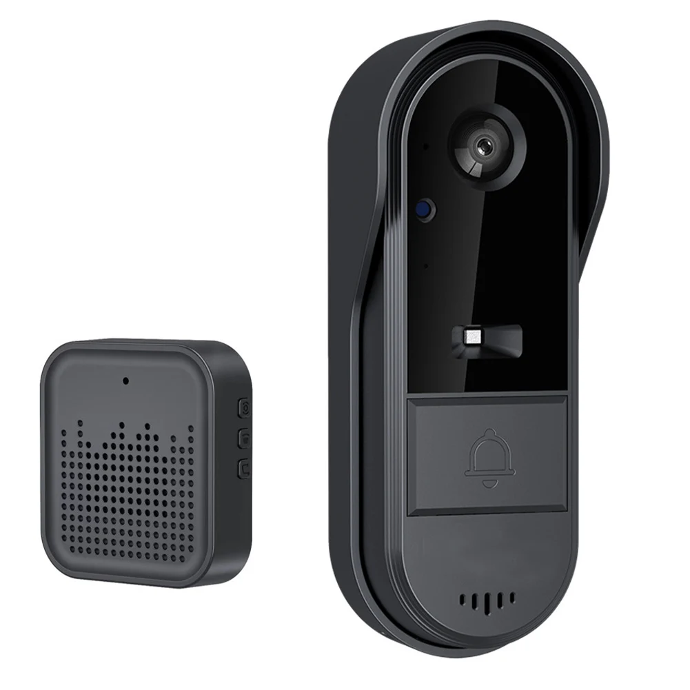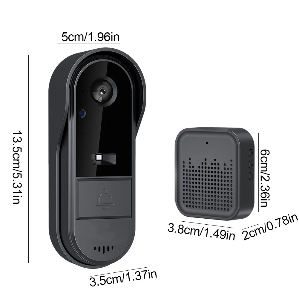 Feature: 1. Durable and Reliable: The wireless video doorbell with chime features a waterproof design, ensuring it works flawlessly in all weather conditions, adding to the device’s durability and reliability. 2. Wide-Angle Coverage: Enjoy a broad field of view with the smart video doorbell camera, providing comprehensive coverage of your surroundings to enhance home security. 3. Enhanced Night Vision: The wireless visual intercom doorbell is equipped with LED night vision, ensuring clear visibility even in low light or complete darkness, keeping your home safe at all times. 4. Crystal Clear HD Imaging: The smart visual doorbell comes with a high-definition camera, delivering crisp and detailed outdoor images for perfect clarity and peace of mind. 5. Long-Lasting Battery Life: The intelligent doorbell is upgraded with a 1000mAh high-capacity battery, ensuring extended usage time and reliability for continuous monitoring. Specification: