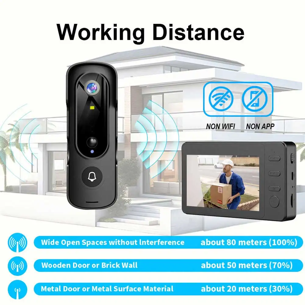 5.Easy Installation: No Wi-Fi or app downloads are required, featuring one-touch pairing for convenient use. With no wires or cables needed, you can access wireless video door bell information and monitor your front door from anywhere using the receiver.