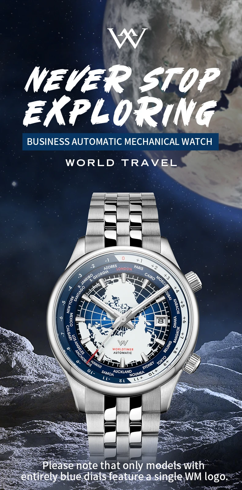 WM Watch Welly Merck Automatic Mechanical Men Watches High Quality Sapphire World Time Original Recognized Brand Watch Man WM057
