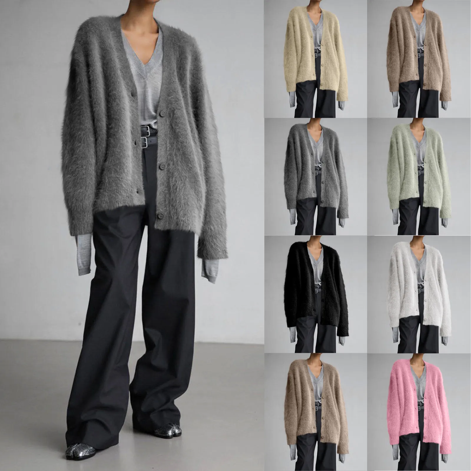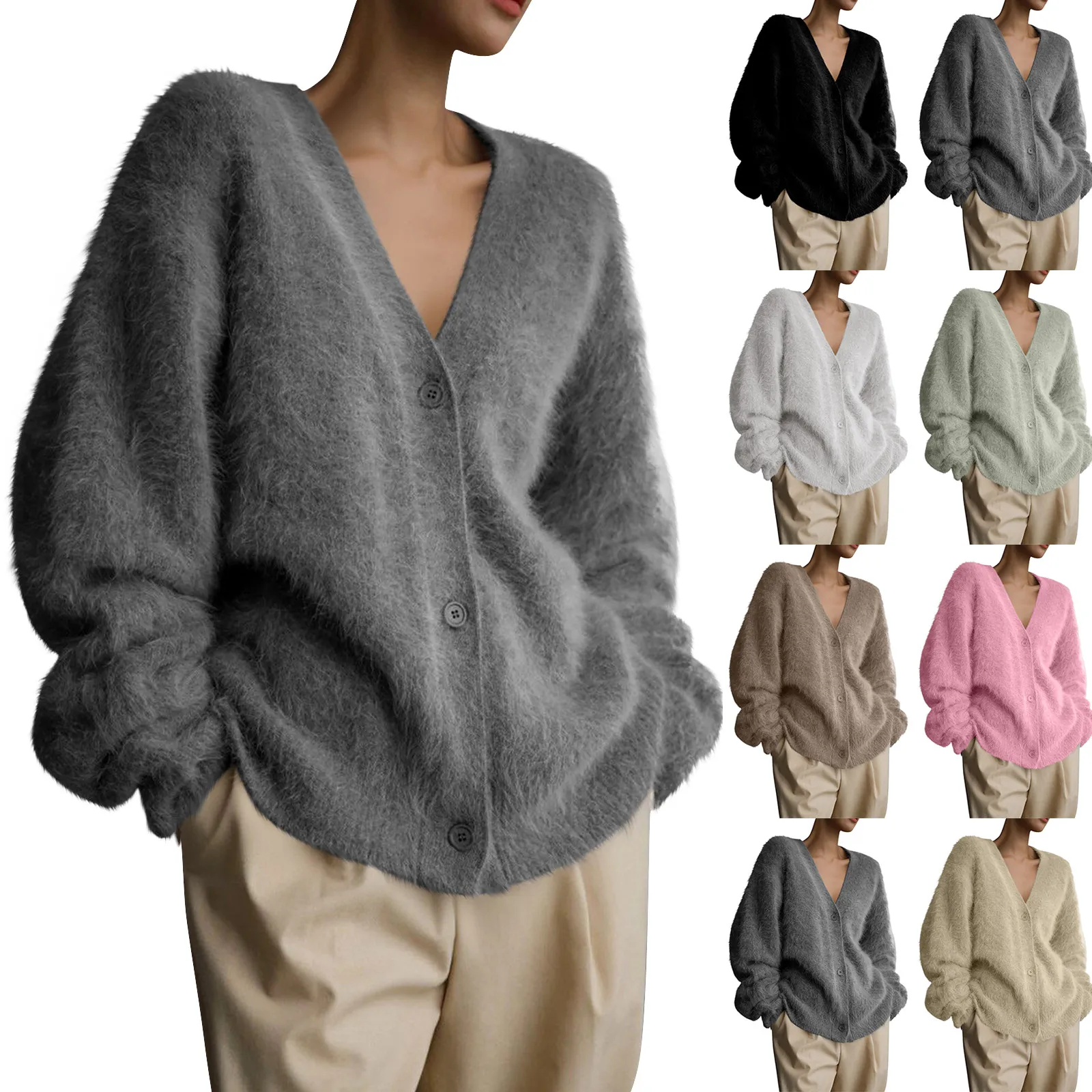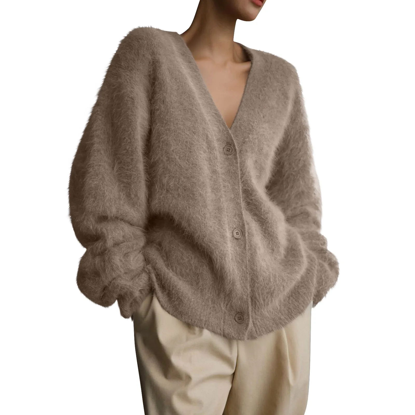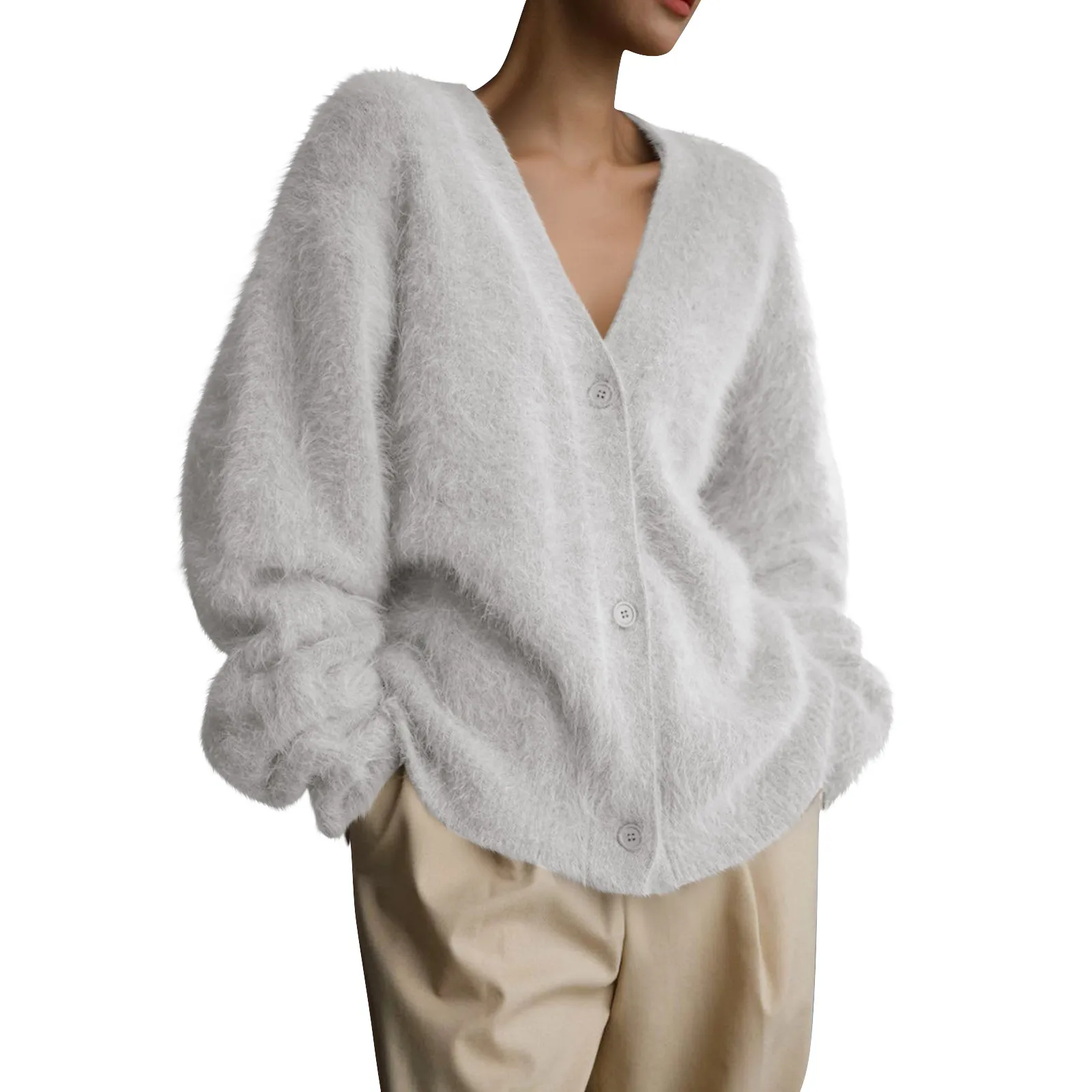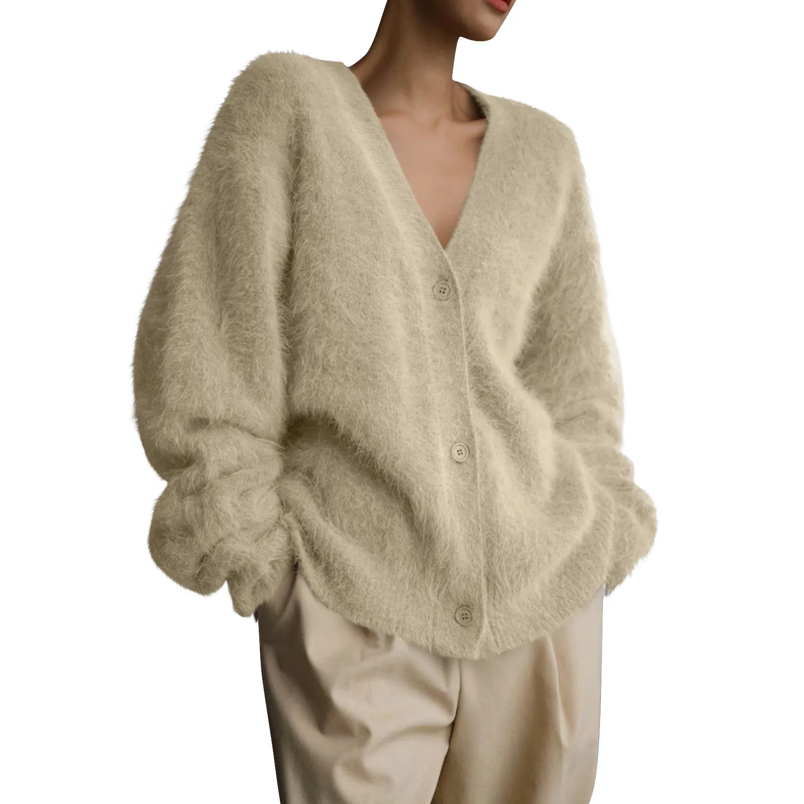 Womens Oversized Shaggy Cardigan Sweaters Fall Fashion Open Front Knit Long Sleeve Button Cardigans