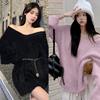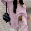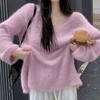 Features: slouchy, soft sticky, gentle sweater, top, autumn and winter, pullover, loose V-neck, mid-length, women’s