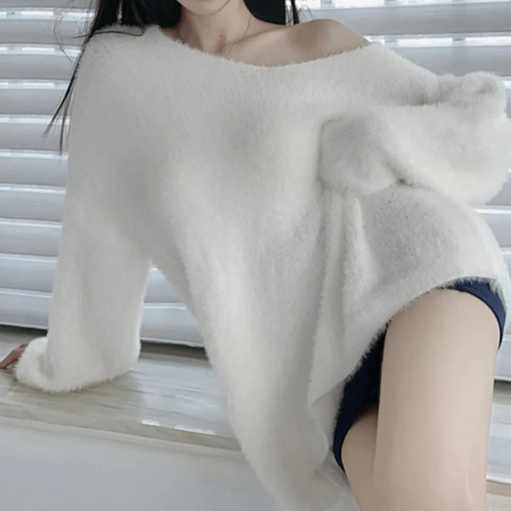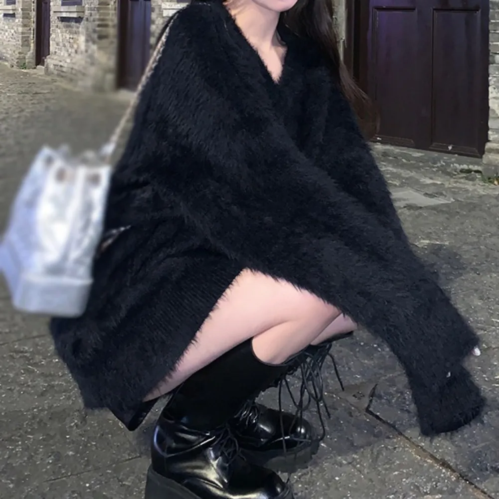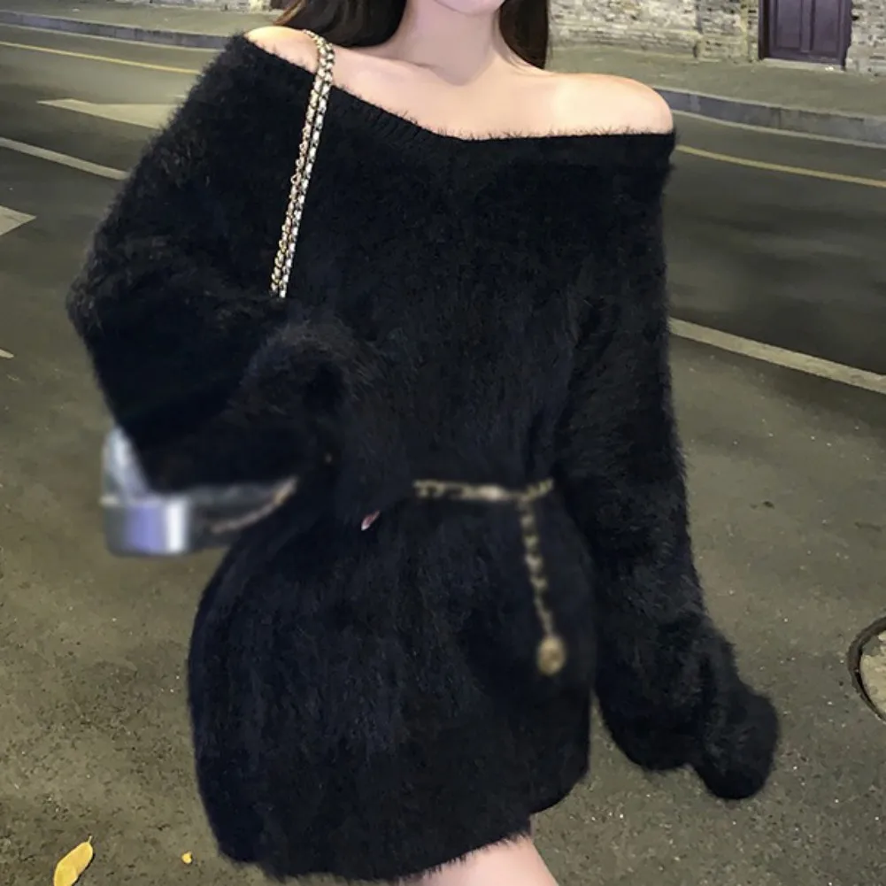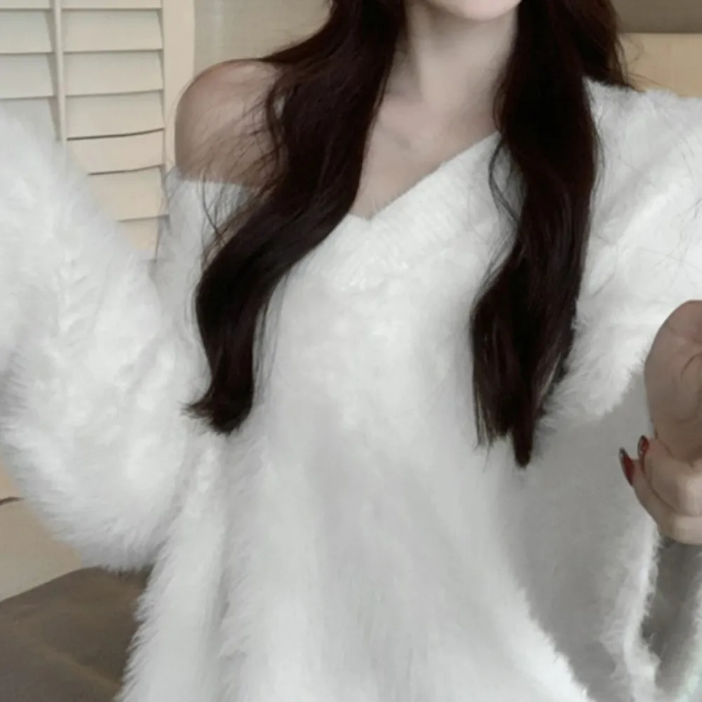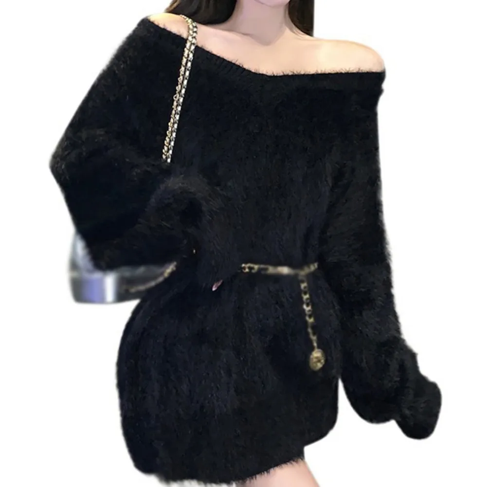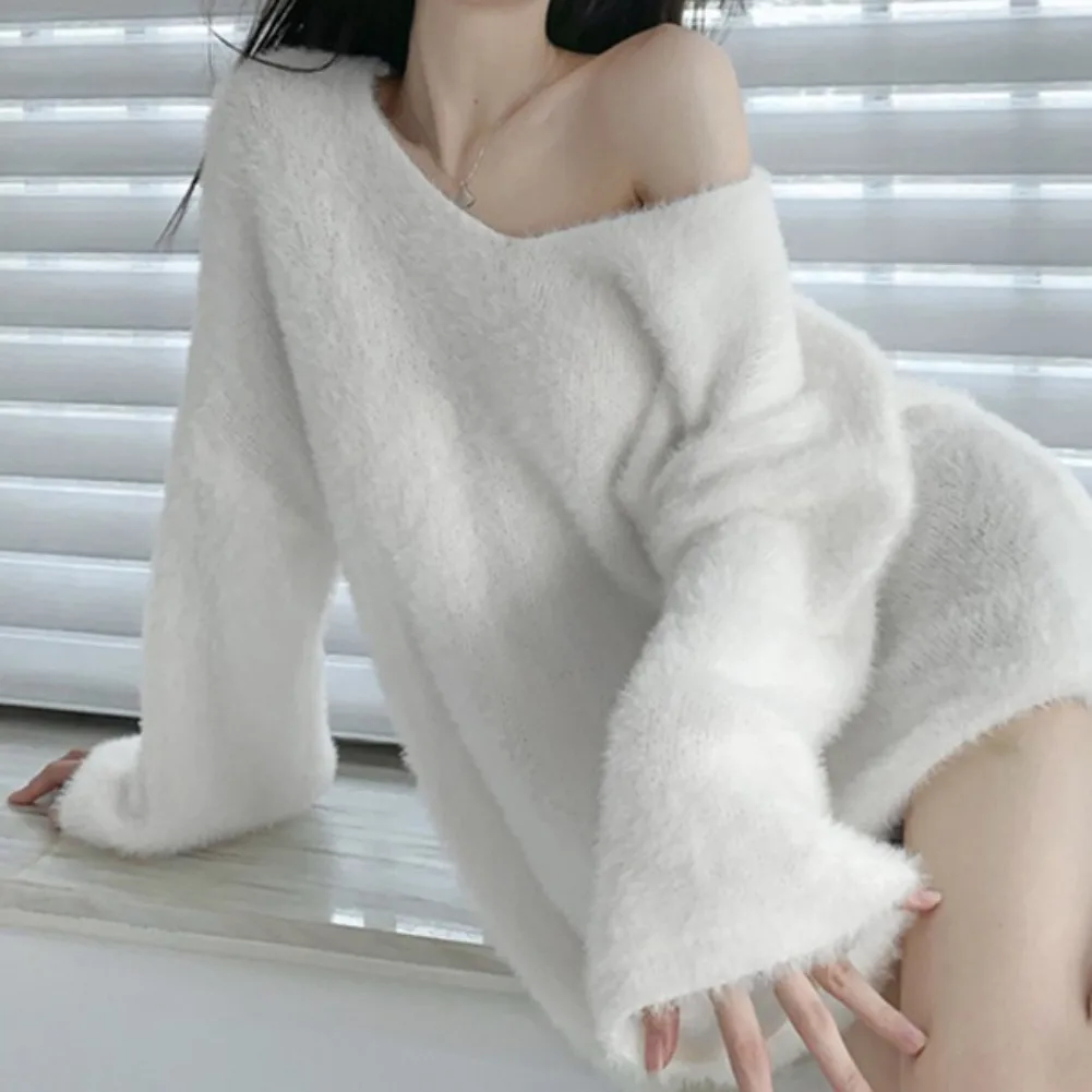 Features: slouchy, soft sticky, gentle sweater, top, autumn and winter, pullover, loose V-neck, mid-length, women’s