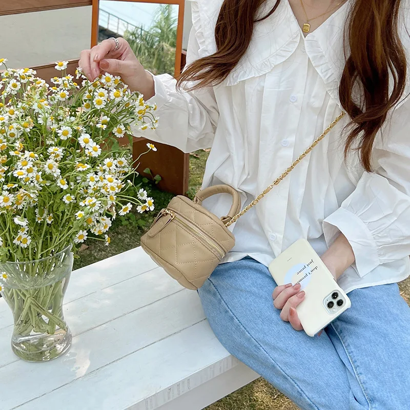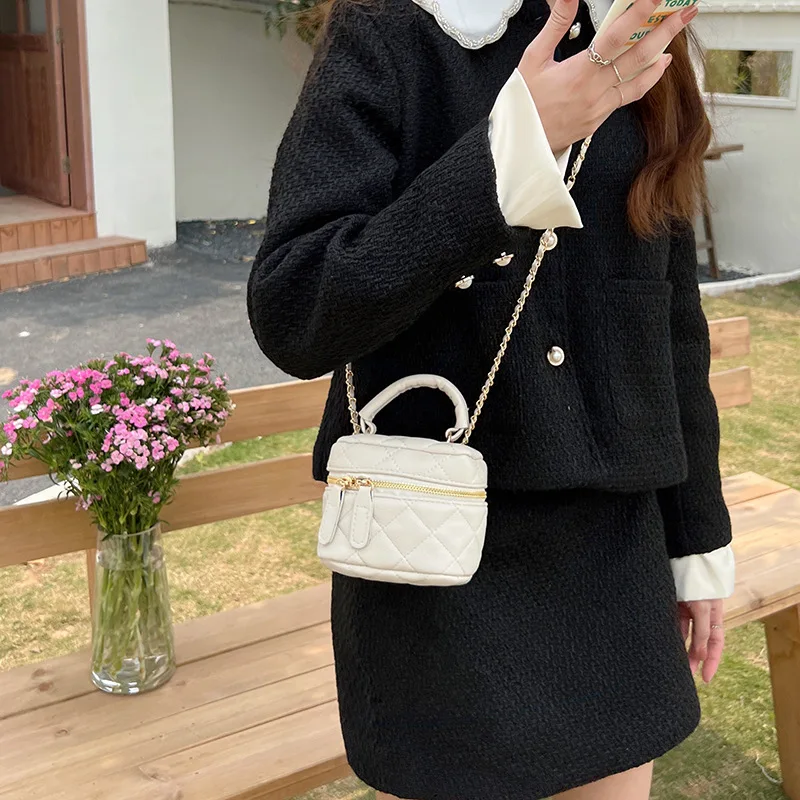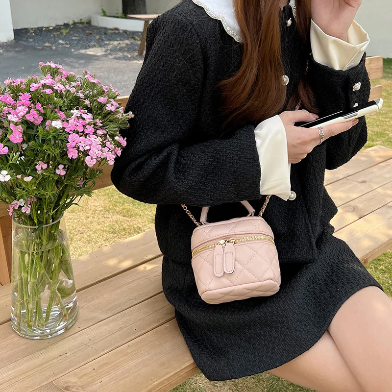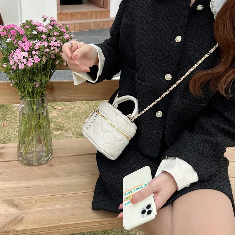 Name: Women Shoulder Bag Fragrance Fashion Mini Bucket Quilted Chain Diamond Checkered Crossbody Bag Fashion Luxury Designer Handbag
