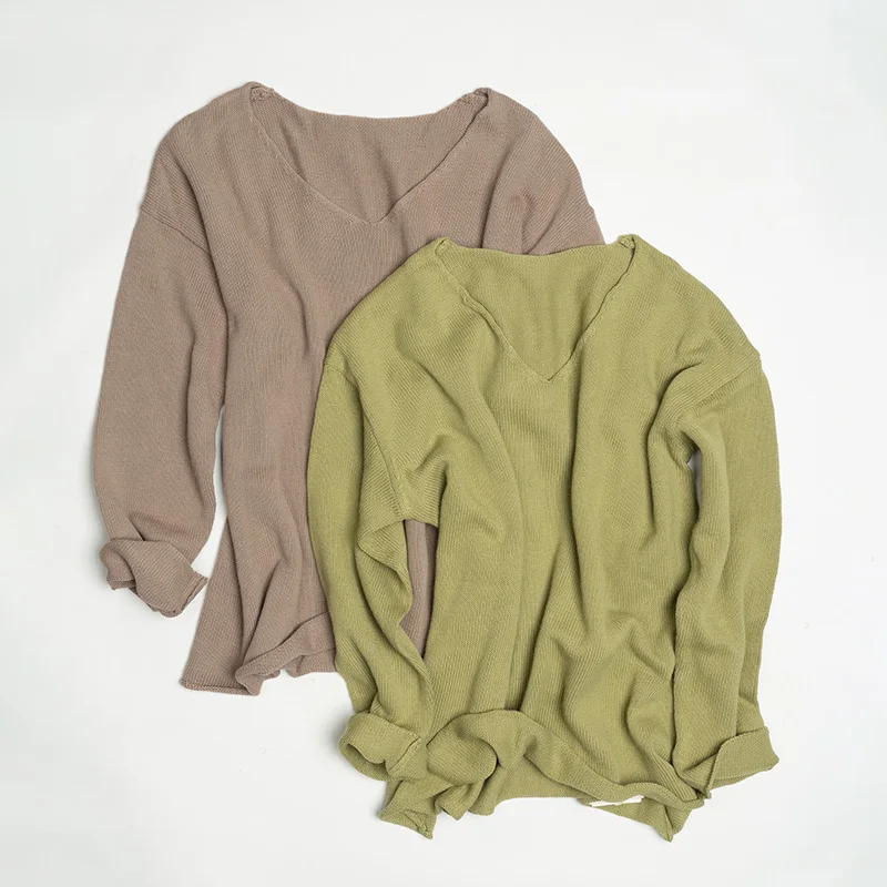 Women Slouchy Oversize Cotton Sweater Long Sleeve V Neck Knitted Pullovers