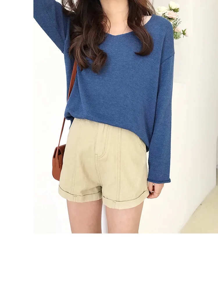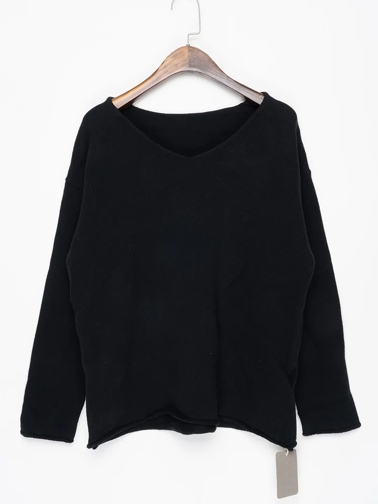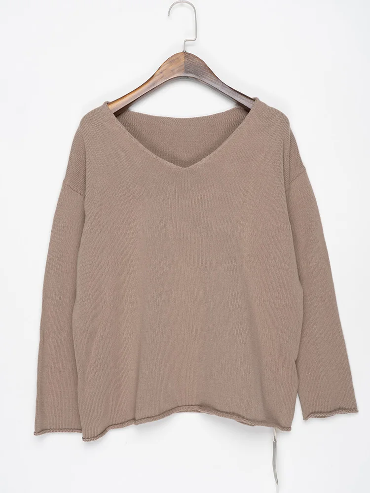 Slouchy cotton sweater, V-neck, oversize fit, dropped shoulder, cuff and hem with roll trims.